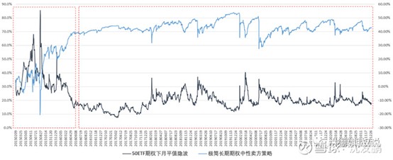 在快速上涨的行情中,波动率明显向上倾斜,对于牛市看涨期权价差上移卖购在波动率上占优。