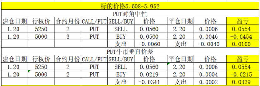 20250212 补充昨天做的日历价差,一个用认购做,一个用认沽做,看同时平仓时,那个相对有优势,各位看买入价格就好,如下:
