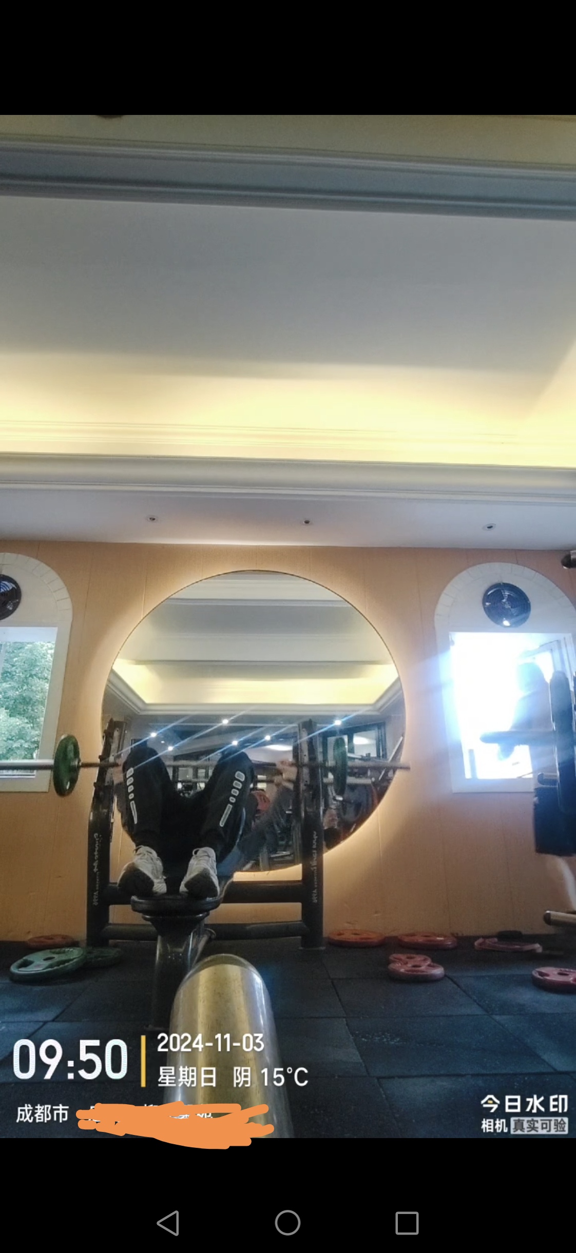 ⑥如果膝好做腿部举,一边各20开始,加到40,三组每组50,30,20。注意膝尖和脚尖同方向发力。心率控制在105至135。
