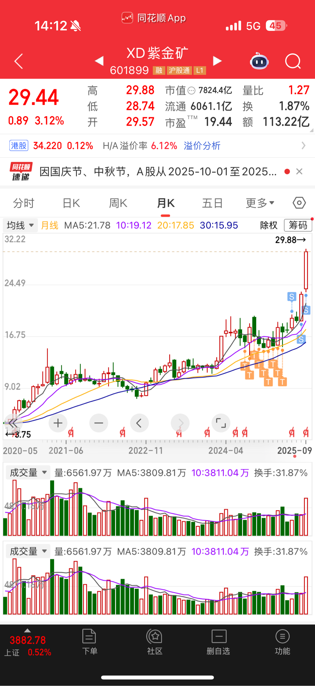 当前仓位6.7%,成本25元,继续持有。
