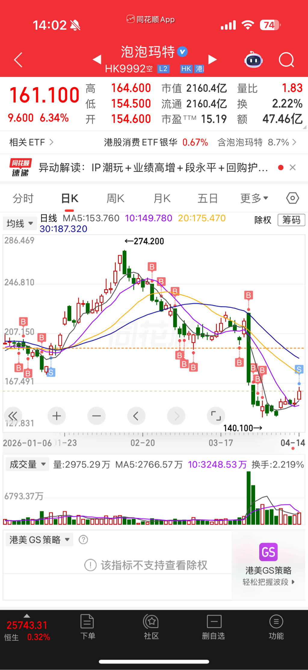 当前泸州老窖成本103元,相比泡泡玛特的暴跌,从容淡定许多。