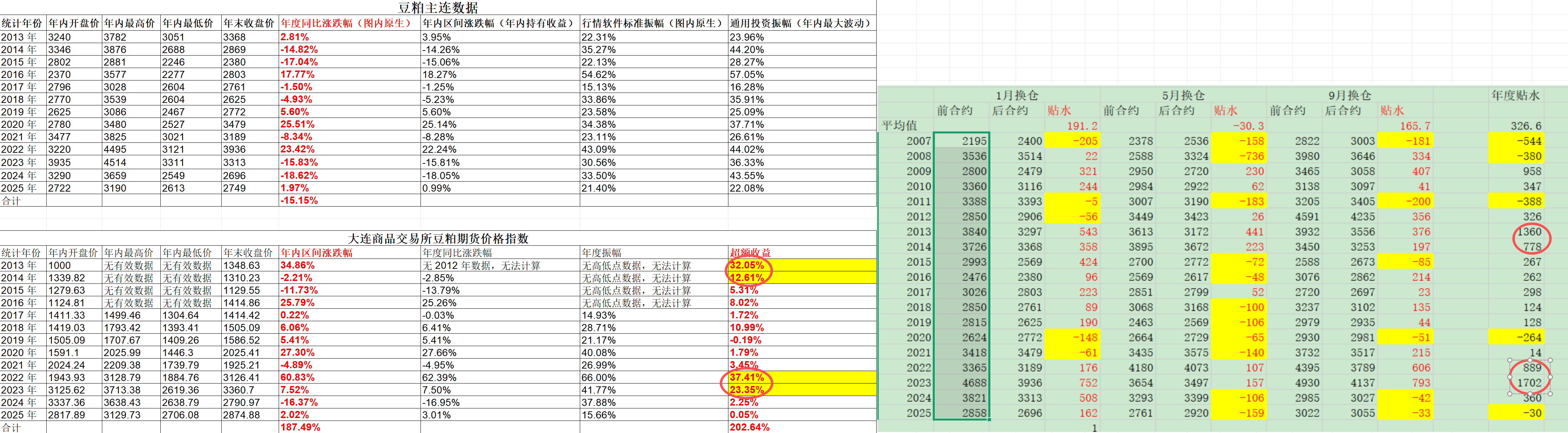 持有豆粕期货的收益来自两个方面,一是贴水,二是豆粕价格上涨。如果单纯考虑贴水,可以在卖掉2603后,换到2612。按照最近1年的经验,2612到期之前会高过2703,在那时换回2703。那就可以确保贴水。