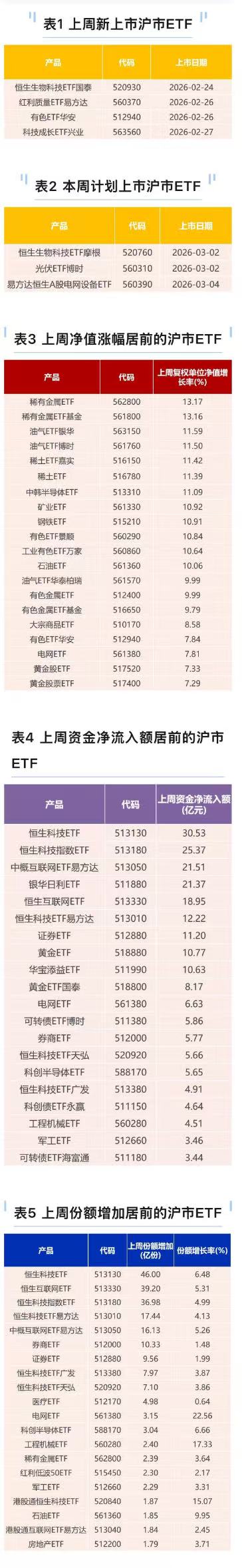 截至上一周末(2024年10月11日),上交所ETF市场共计挂牌580只ETF产品,上周新上市ETF产品1只,本周计划上市ETF产品7只。