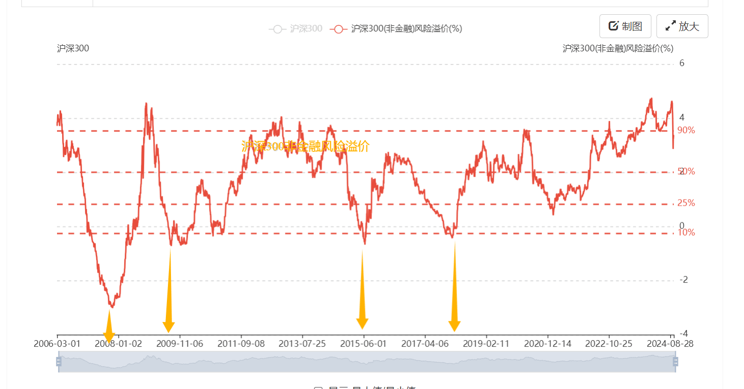 哦,还有你觉得A股估值低是因为银行股拉低了,那就来个沪深300(剔除金融)风险溢价反驳一下你