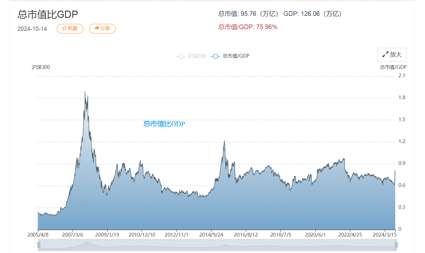 但我并不认为跟流动市值有太大关系,市值/gdp,或者除以什么社融,除以m2之类,没有一点经济上的意义。极端杠一下把a股5000多只股票全退市,留一只st退市股,难道这只退市股的市值就应该涨到几十万亿吗,显然并不会。