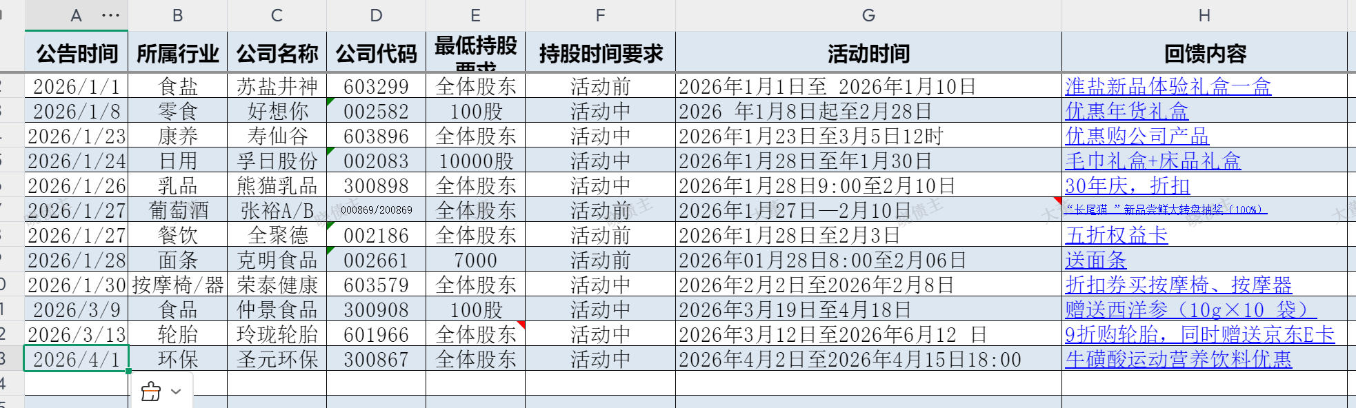 【金山文档 | WPS云文档】 A股上市公司股东回馈汇总统计