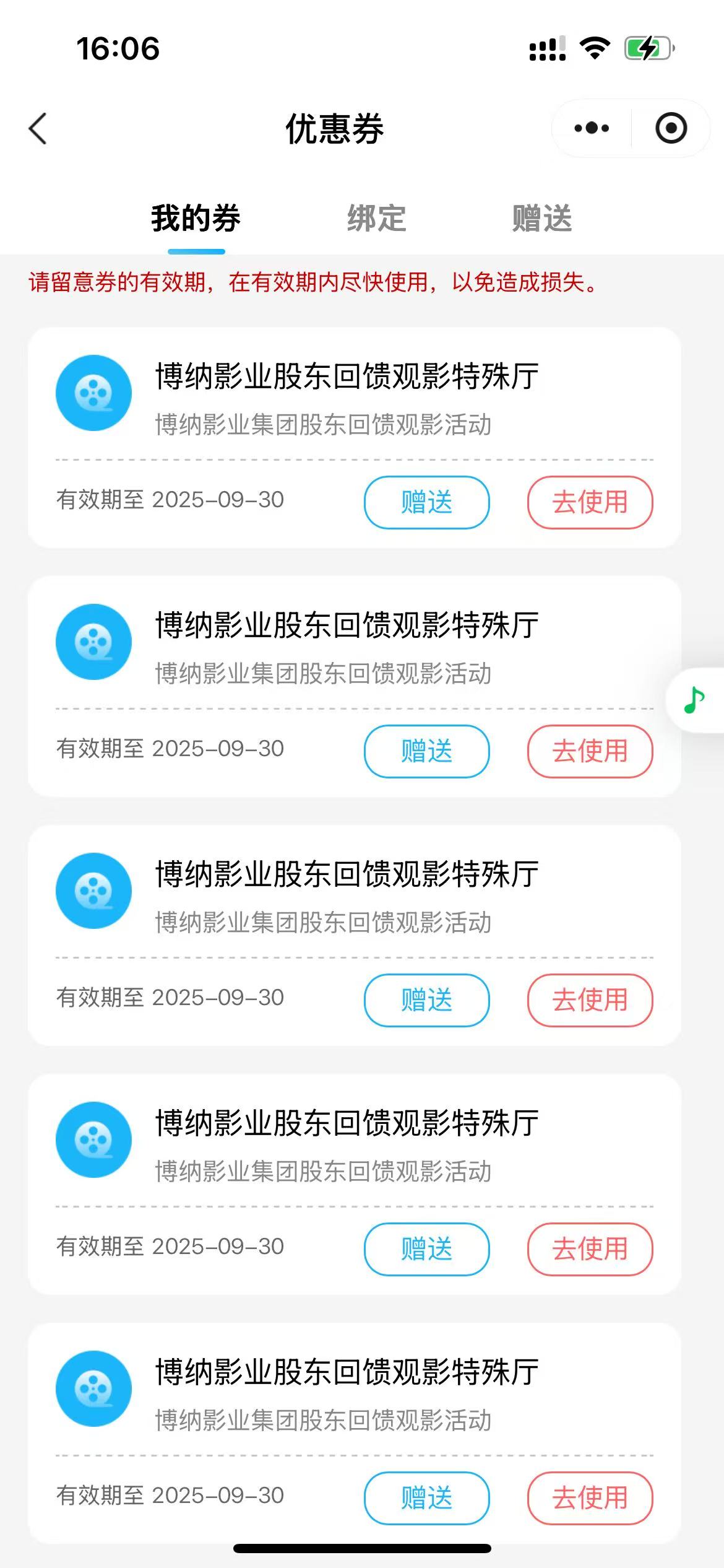 电影票收到了,9月30号就到期了。试了下可以兑换IMAX和水晶厅,北京朝阳门悠唐博纳一张票80,但没时间去看啊...谁要啊,可以转赠,便宜出
