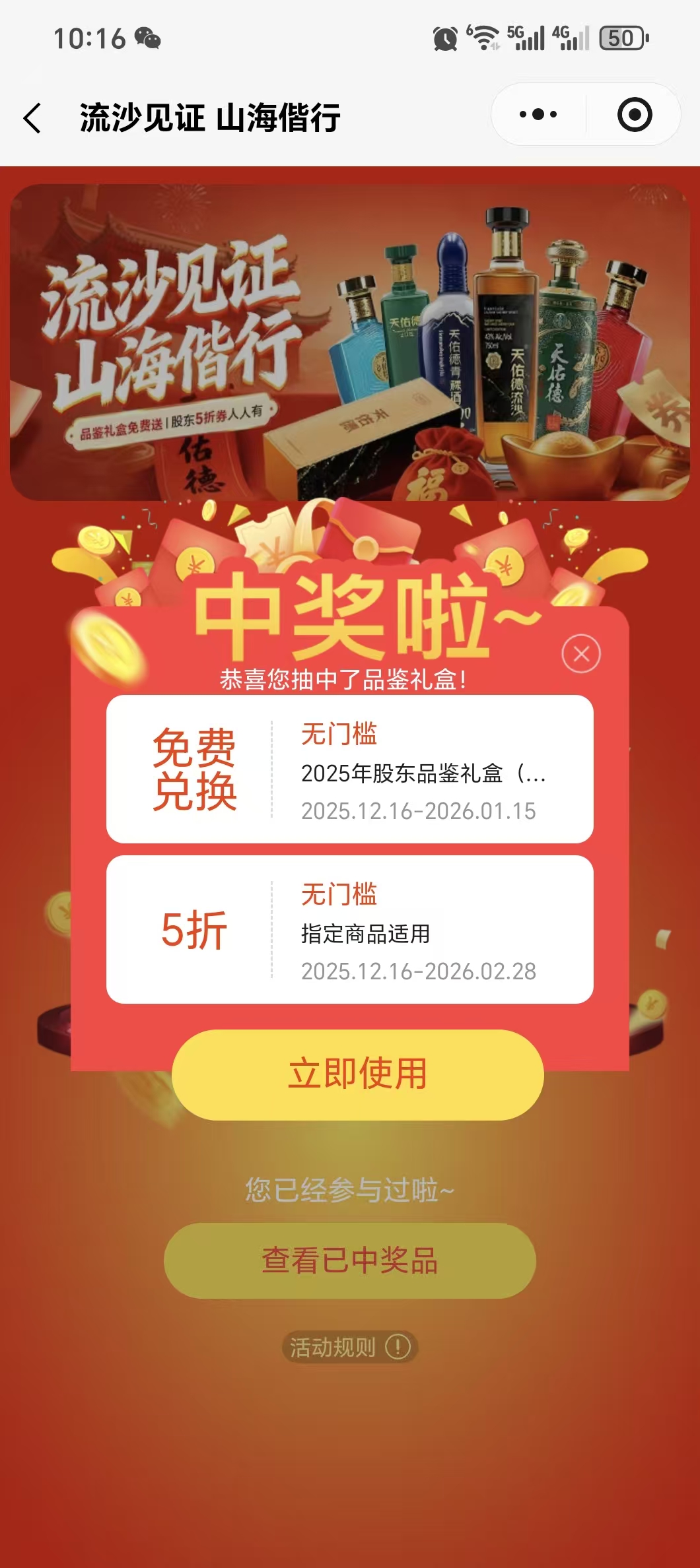 2、天佑德酒股东品鉴装一份,共计 3,500 份,在报名成功人数中抽取。品鉴装包含内容