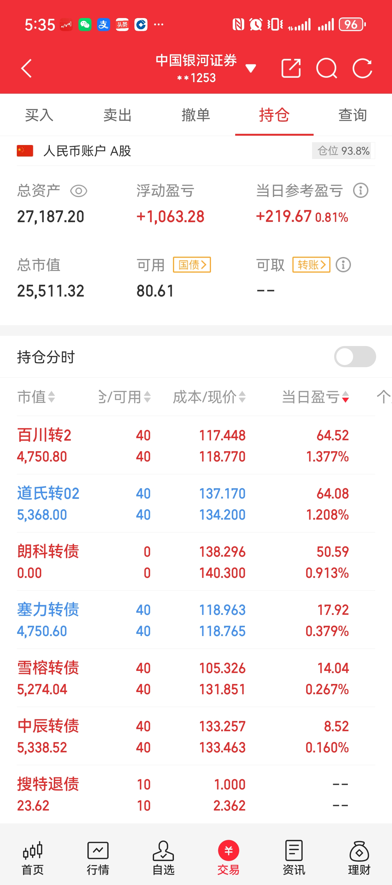 今天可转债明显比股票强势,给本周收了一个好尾,真是刺激的一周。