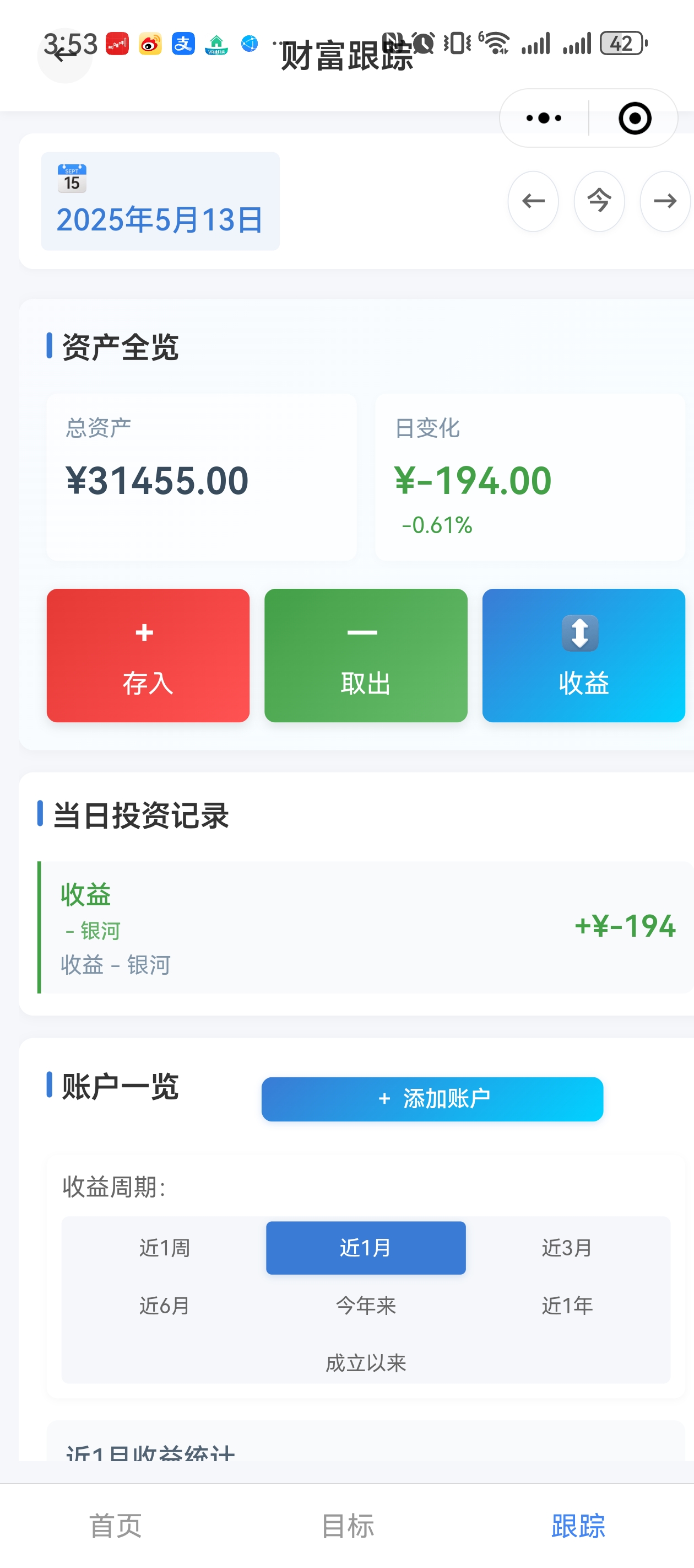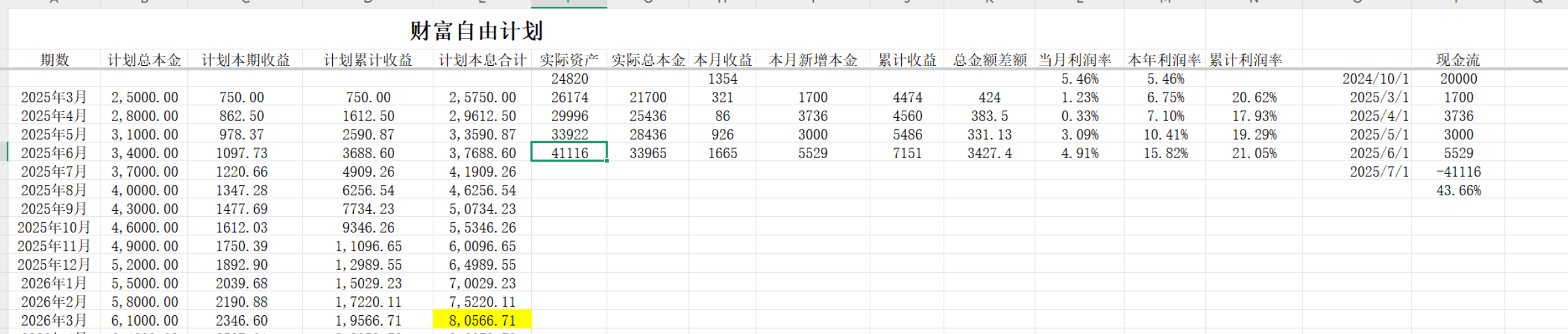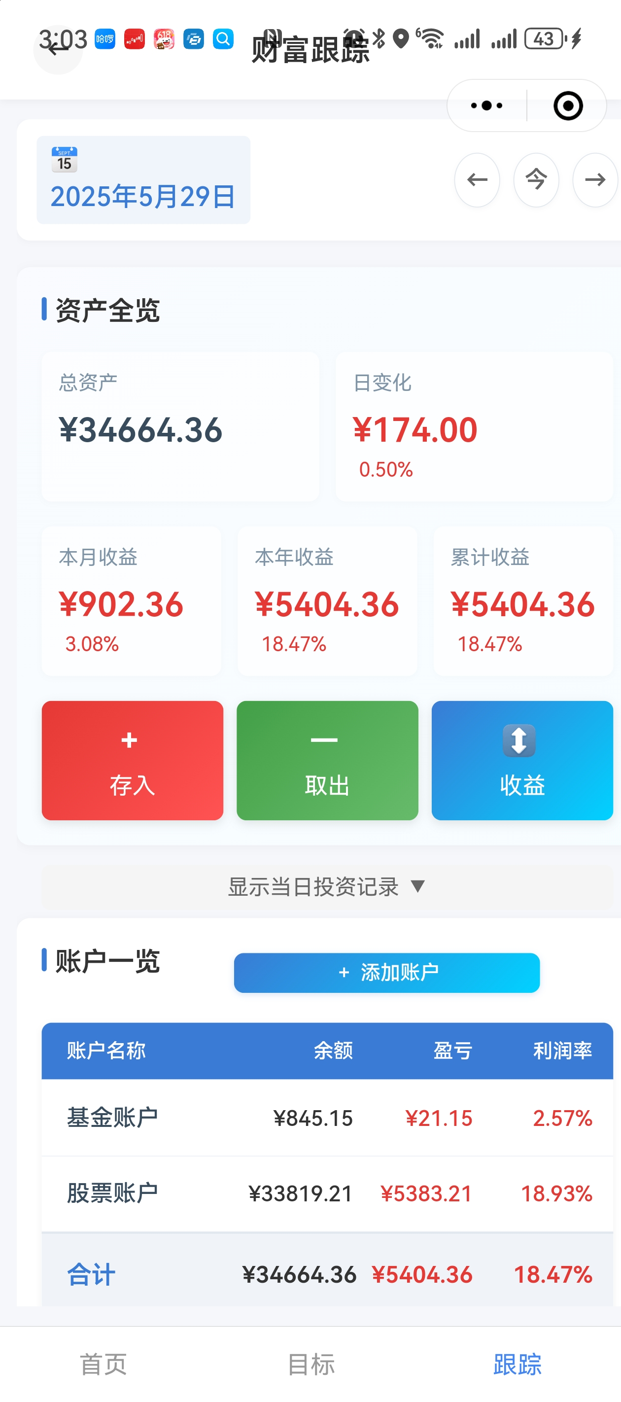 2025/7/4 账户资产43745元(本金34972元,收益8773元)