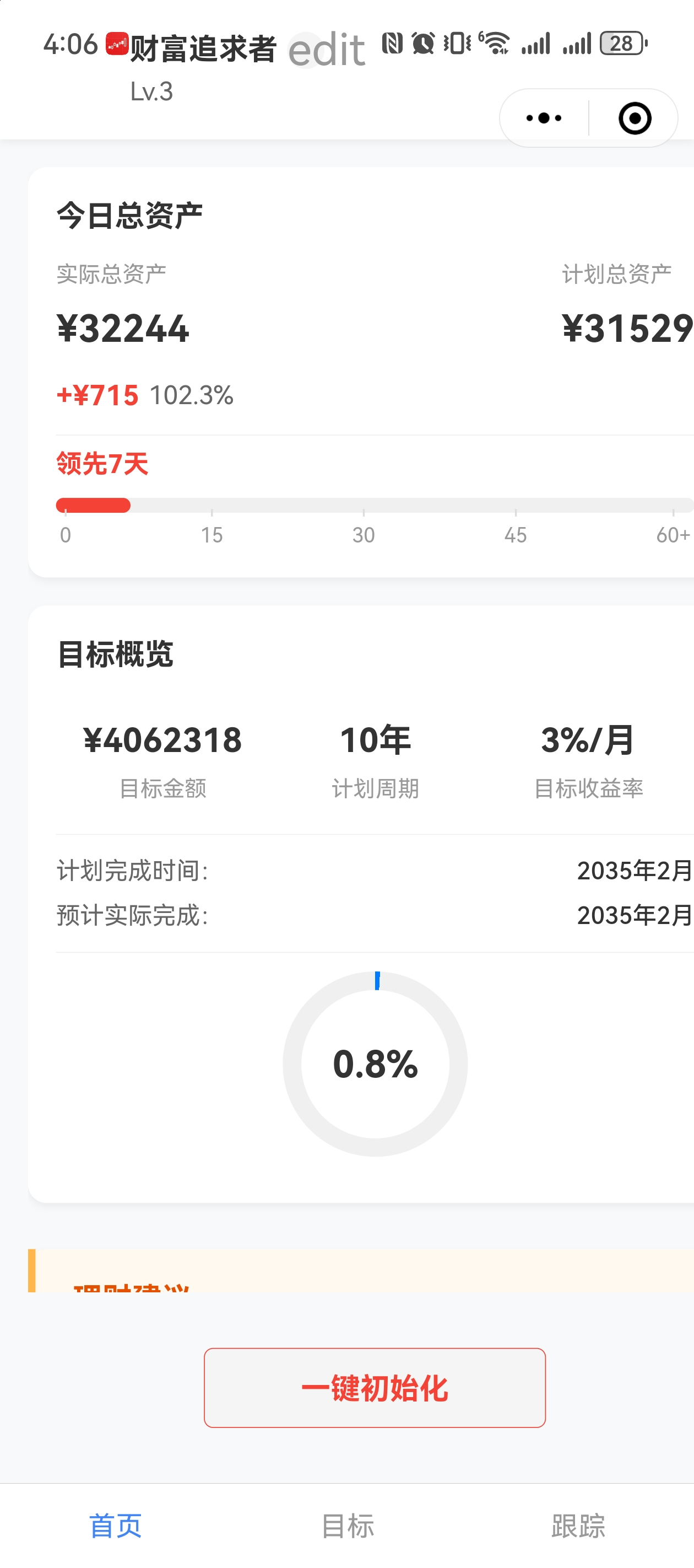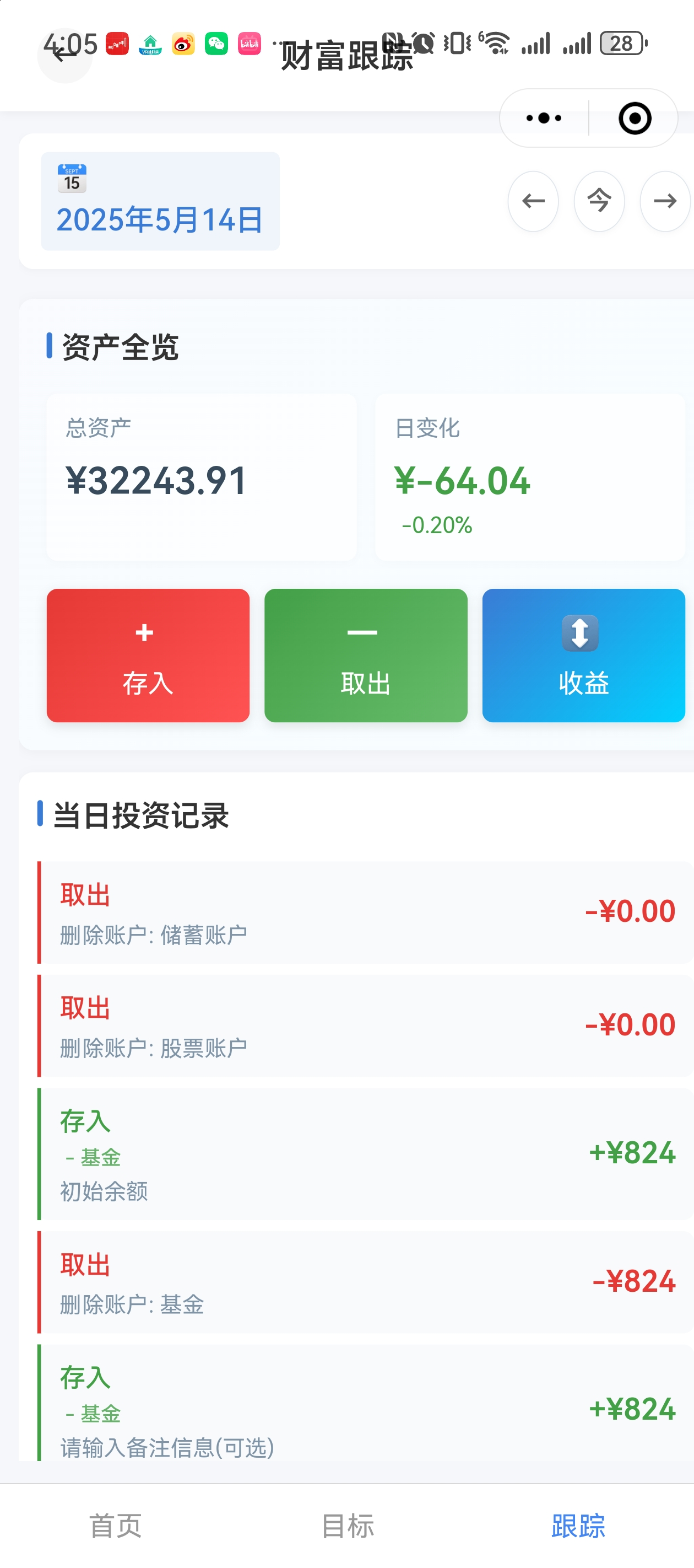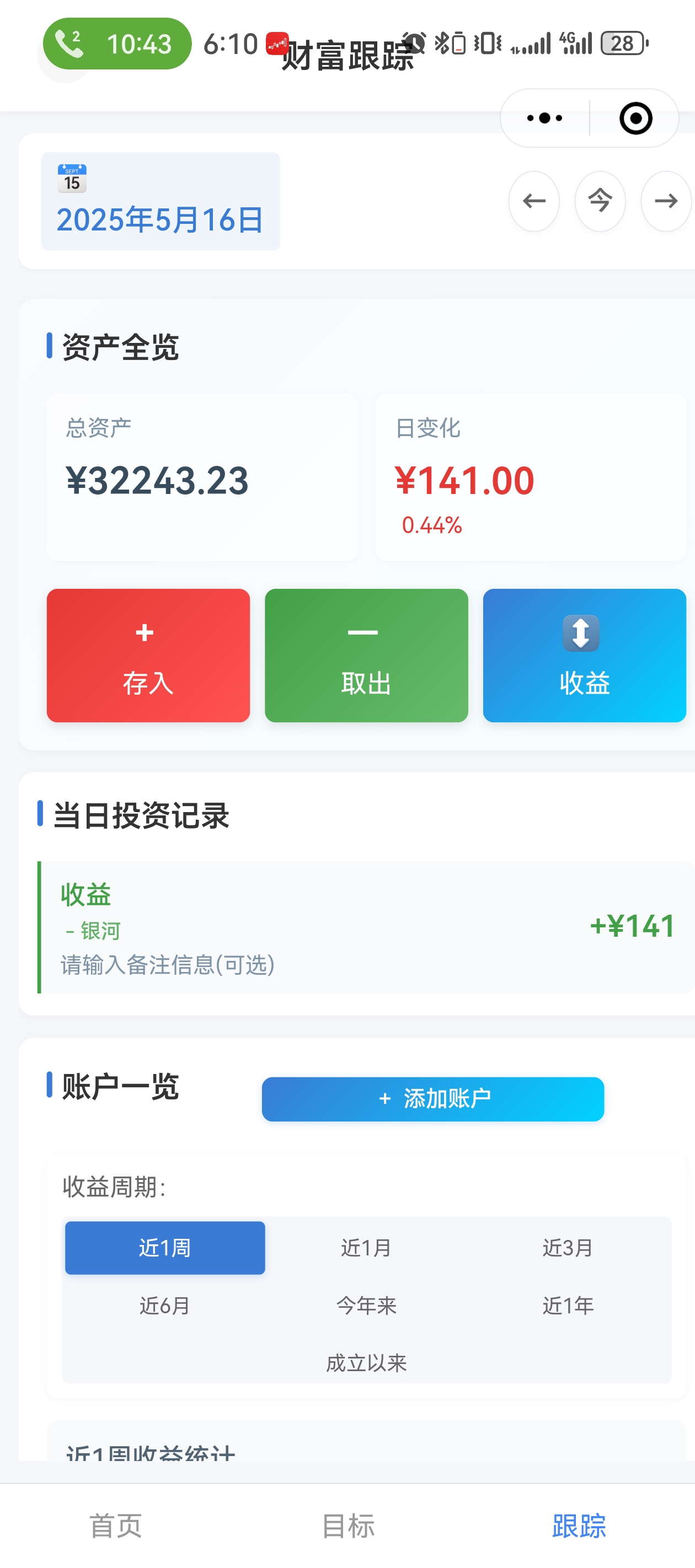 2025/7/4 账户资产43745元(本金34972元,收益8773元)