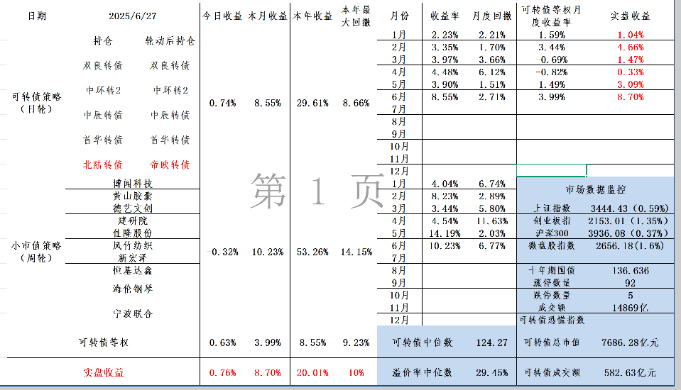2025/6/27 账户资产42205元(本金34090元,收益8115元),日盈利0.65%,月盈利7.75%,本年盈利18.96%大哥,能简单透漏下这个小市值策略吗?谢谢