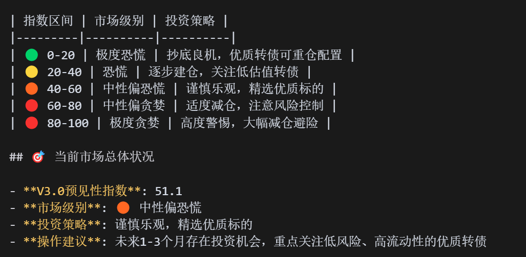 | * 0-20 | 极度恐慌 | 抄底良机,优质转债可重仓配置 |