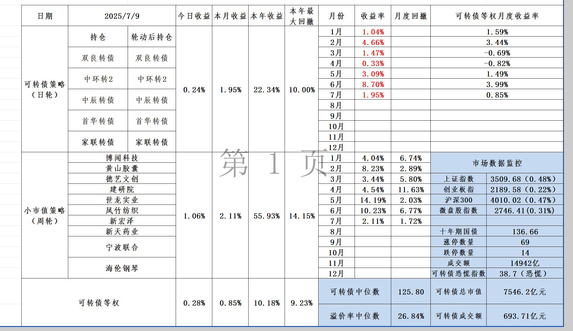 小市值以15%的仓位,收益跑赢了85%仓位的转债。