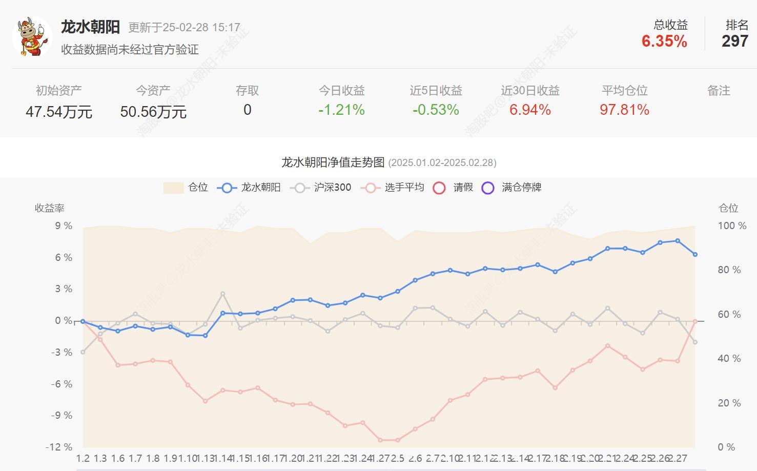 场内基债:仓位53% .上周就降到了60%,周一继续减了10个点,错过了红利、可转债的火爆行情。创新药ETF、红利国企、中证红利减得太早,周五茅子暴跌又带崩了手上重仓的消费ETF,趁银行联系调整 加了一点红利低波持有。买了一笔养殖ETF做防守。