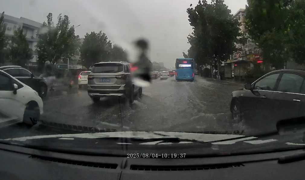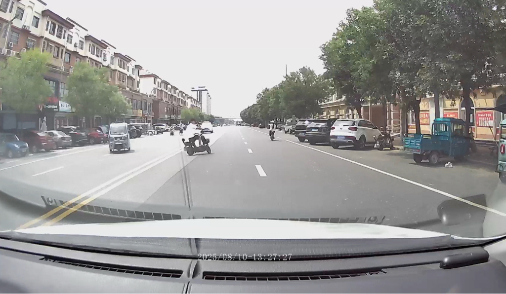 我的车刹停时距离这孩子也就10米左右,这熊孩子突然的二次左转,还成功逼停了对向驶来的家用车和道路王者老头乐