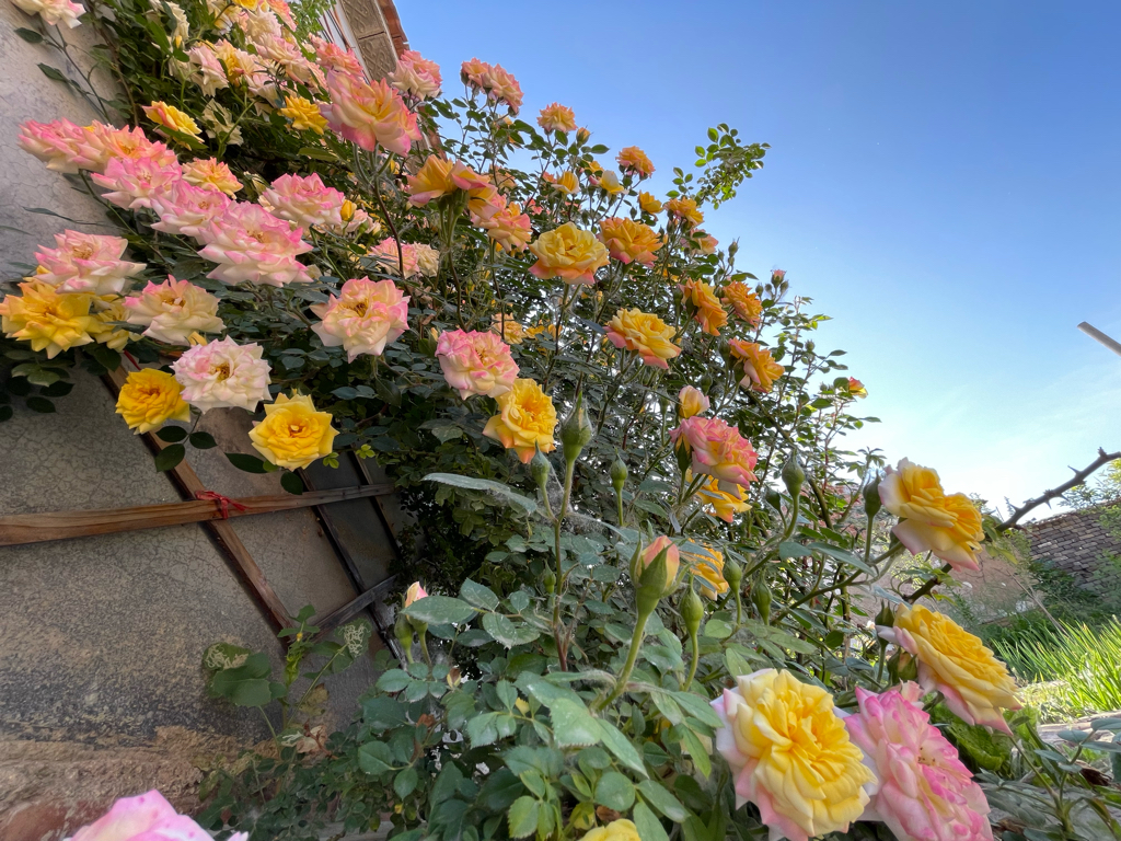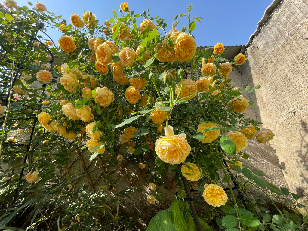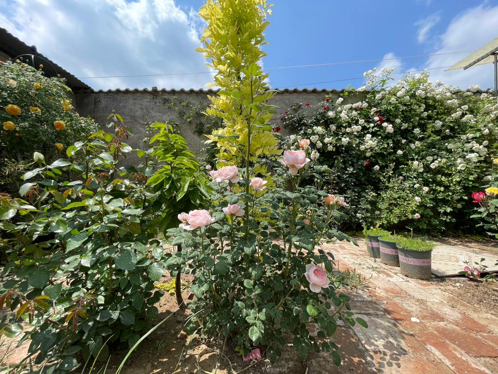 院里的藤本月季今年光彩夺目,花量大,香气浓,色彩艳丽,我总是说种花的尽头是月季,种月季的尽头是藤本,跟藤本月季一起成长、经历他的花期之后,会被这些极尽华丽繁茂的植物所迷倒