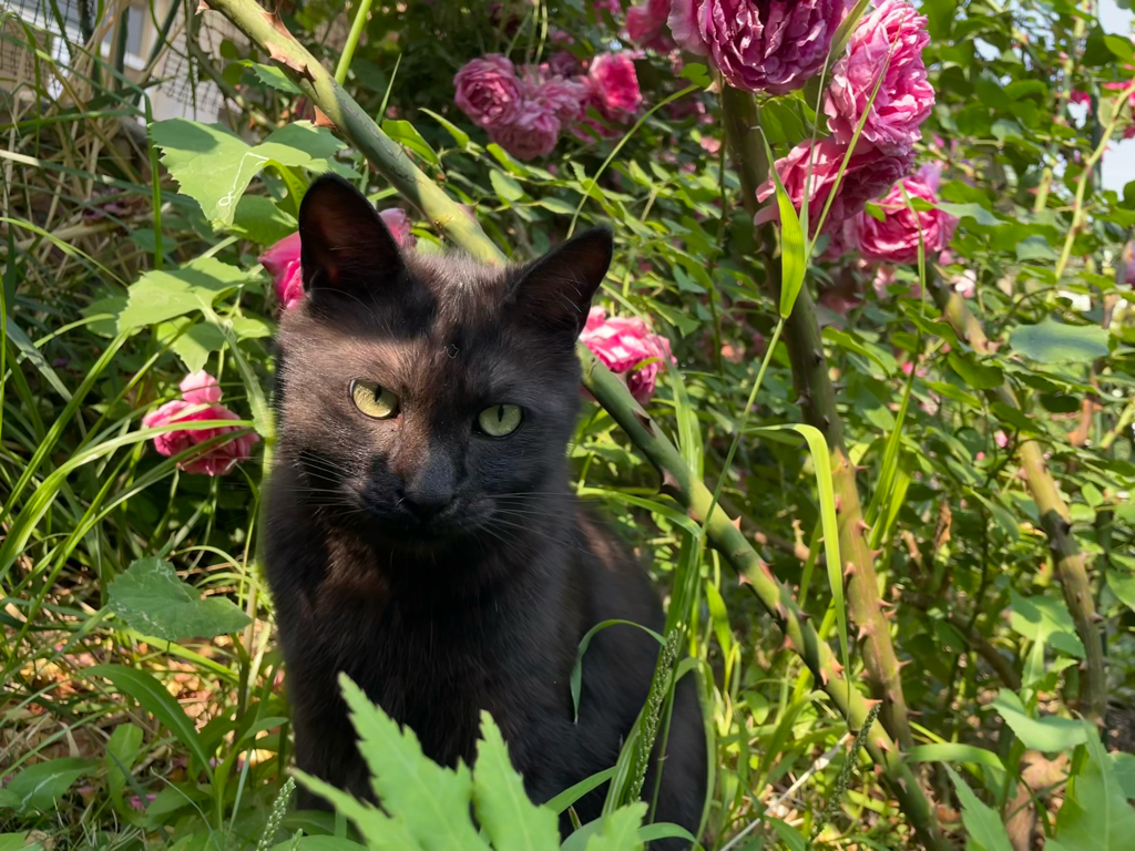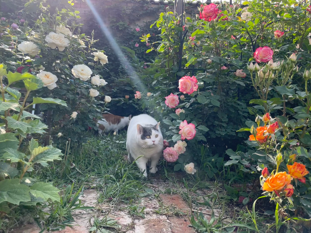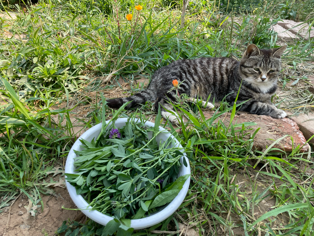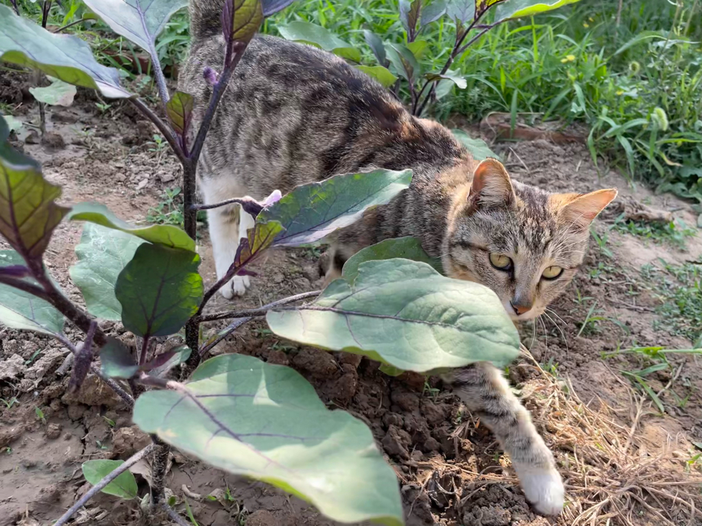 杂草还是最好的猫草,三只猫每天都要在草丛里吃一会草叶,自我催吐以清理其体内的毛球