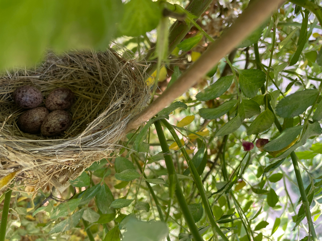 他们在我身边的花架里产卵孵蛋,已有半月,他们的繁育地离我的起居活动场所太近,导致我和猫狗的日常活动,频频惊扰到他们夫妻孵蛋,一天里不知道要把他们从巢中惊飞多少次