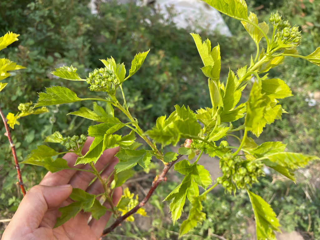 很多人没见过火晶柿子开花吧?我去年种下的筷子苗火晶柿子,今年做了五六个苞,这几天这几个花苞正在开放