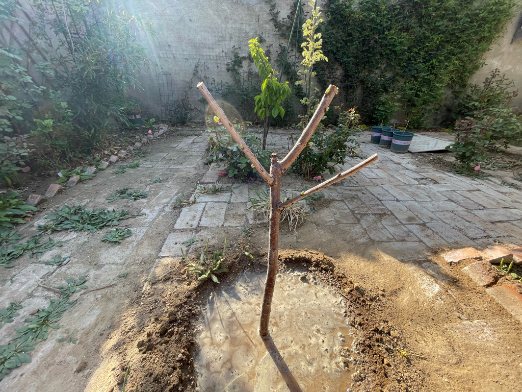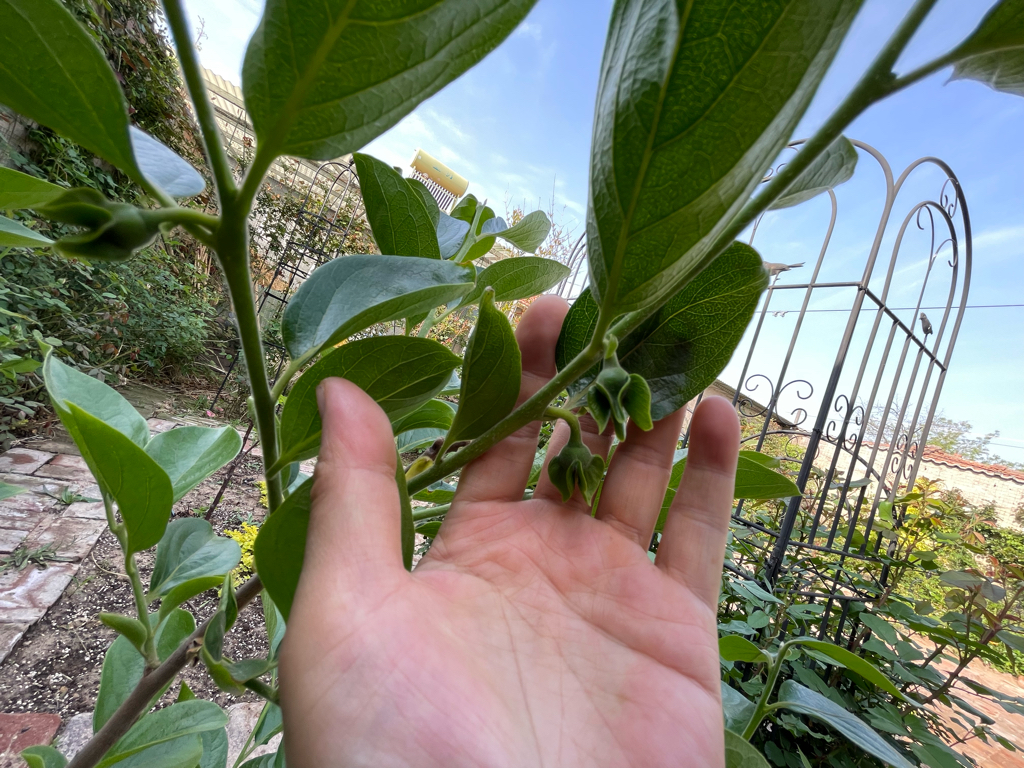 去年我在院子里种下了两个品种的樱桃,生长了一年,也病恹恹的,种下一棵突尼斯无籽石榴,倒是长得特别旺盛,还种下一棵火晶柿子,也长得特别旺盛,火晶柿子是北方庭园观赏树的必备良品,挂果之后特别好看,玲珑精致,树形也不大