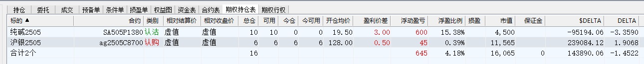 今天比较有意思的是原油的双买持仓。从call赚钱、组合赚钱,到put赚钱,组合亏钱。虽然原油隐波冲高回落,但比较仍在上涨,继续观察。