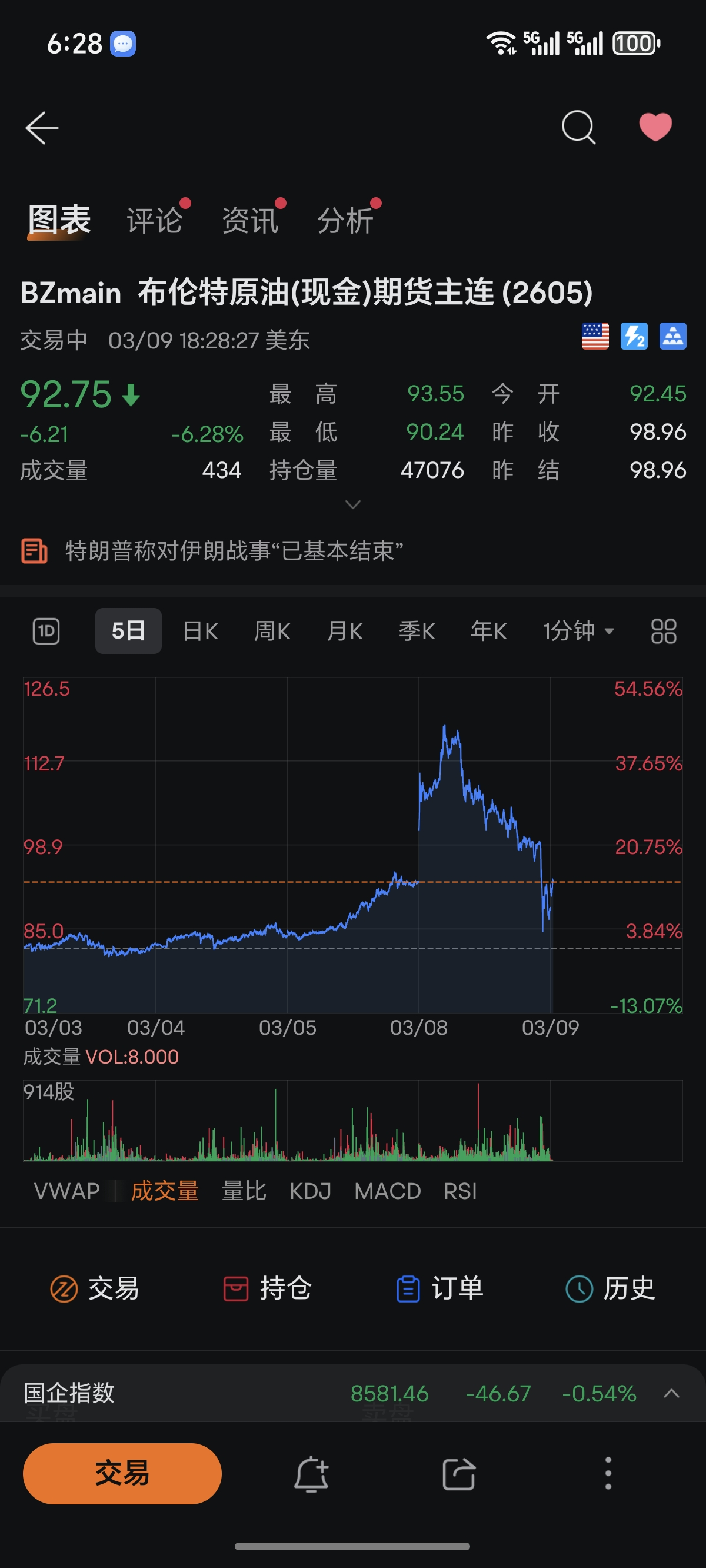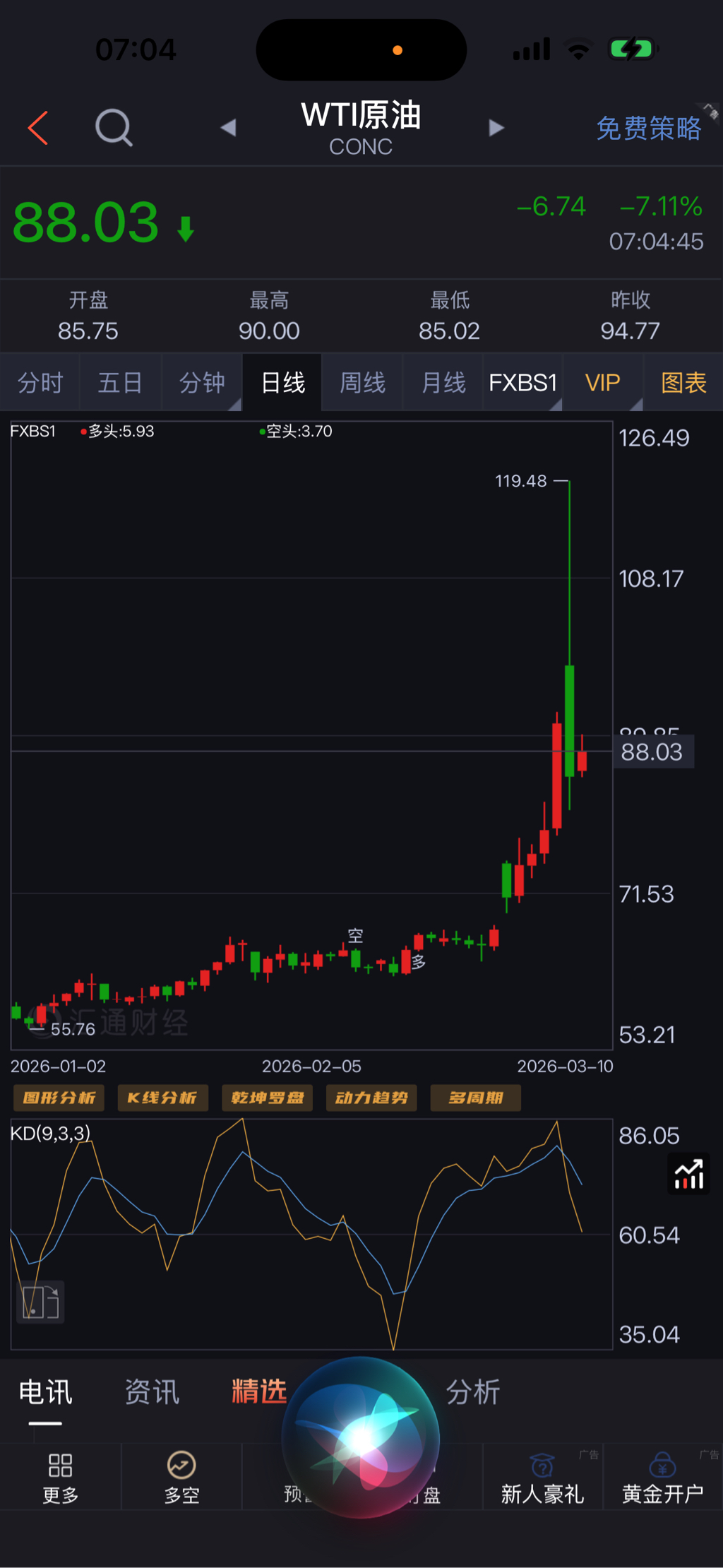 虽然主观上我认为后面会降波,特朗普也不愿意油价持续大涨。战争如果结束,原油价格会回落。但是这不是能指导你操作的理由,也不能防止短期内的波动风险。所有的建议仅供参考。