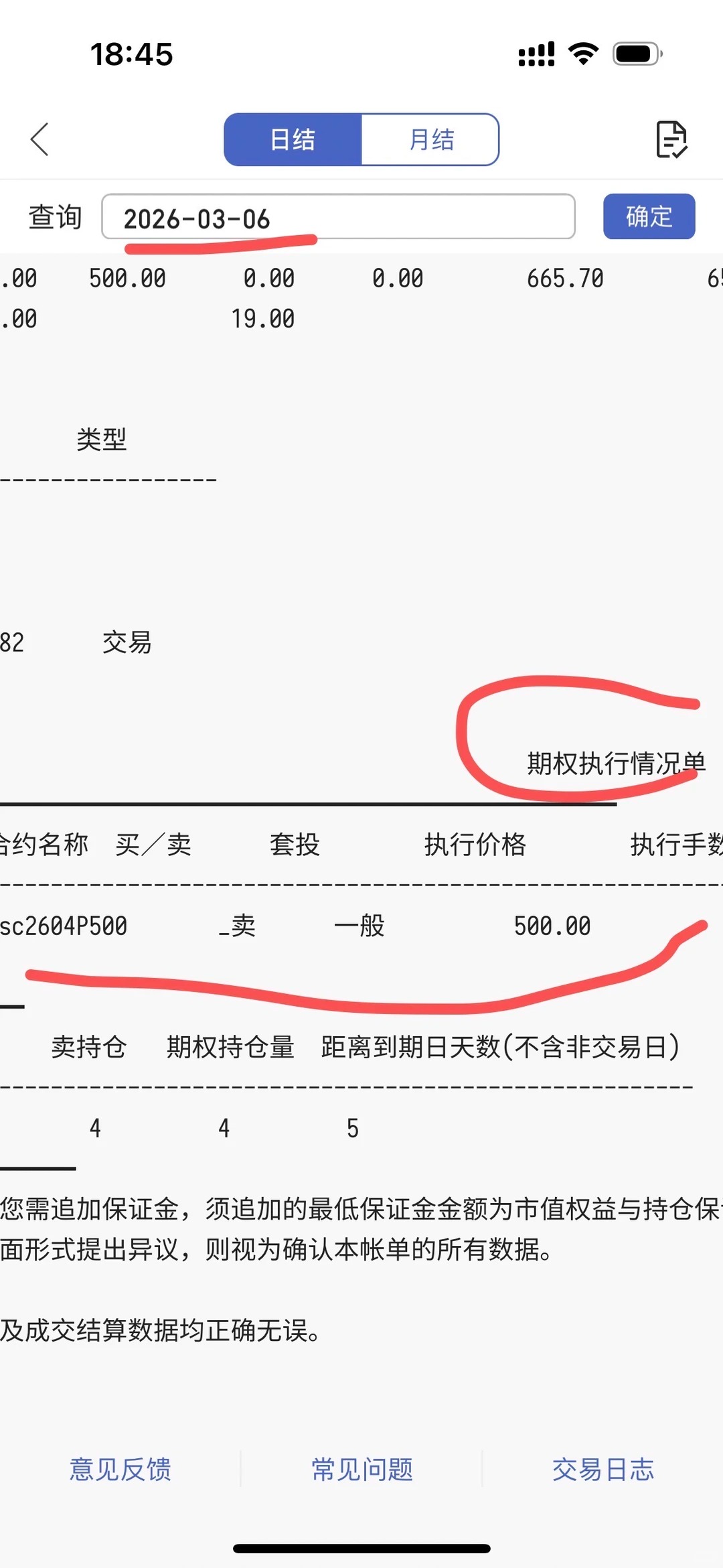 一个朋友的SC2604P500竟然被行权了,这是最夸张结算单了吧,一个持仓10000手左右的原油期权,完全不知道对手是谁, 真彩票还得是卖美式期权,根本不是压路机前捡钢镚儿,而是别人整个送了个压路机。这个SC2604 500合约 的卖沽,我也有。。也想中个彩票。。