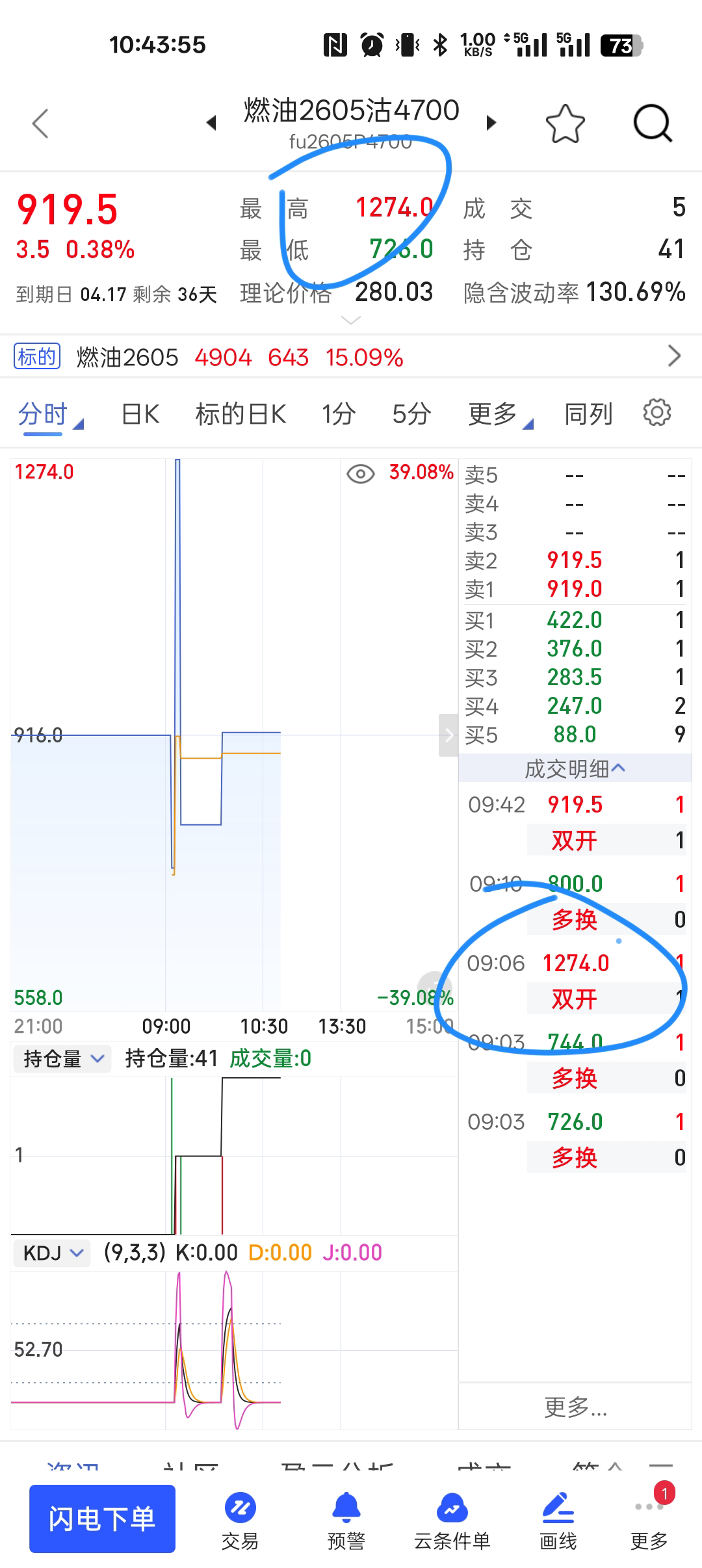昨晚开盘没多久就卖了一手fu2605c5800,立马就浮亏,后面看到楼主私信“高波减仓应对”,我也没问是减什么,就把6手fu2605期货多单全平了,大概是在4850平的,后面看着不对,居然上5000了,就继续卖fu2605p4000,加上原来就卖出的6手fu2605c4600,整体还是偏空一点的,虽然期货平仓没做好,早上看到外盘原油跌了,就挂单买入手期货多单,但又忘记改止盈止损了,买了几秒又平了,后面还是接回来了2手期货多单。总体操作慌慌张张的,甚至昨晚的操作都是亏钱的。