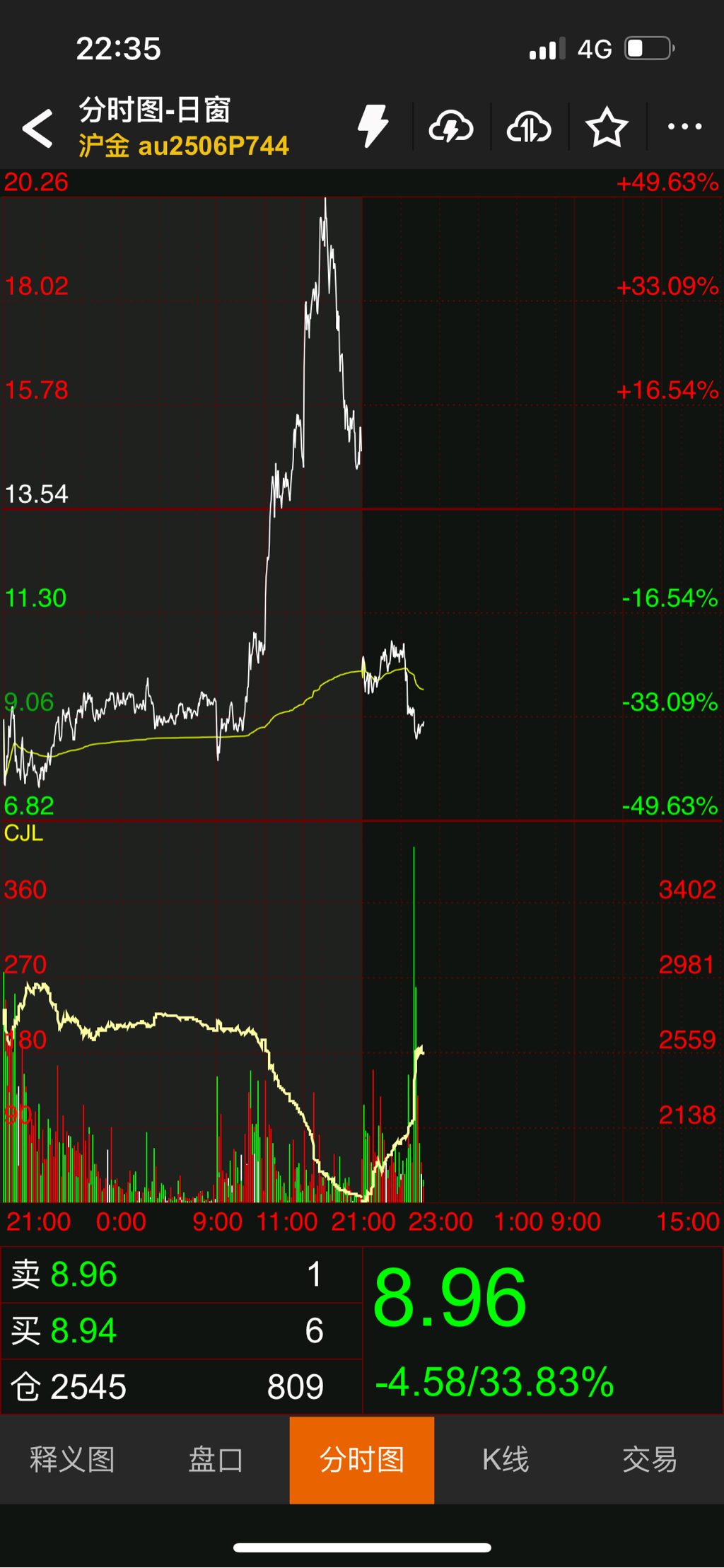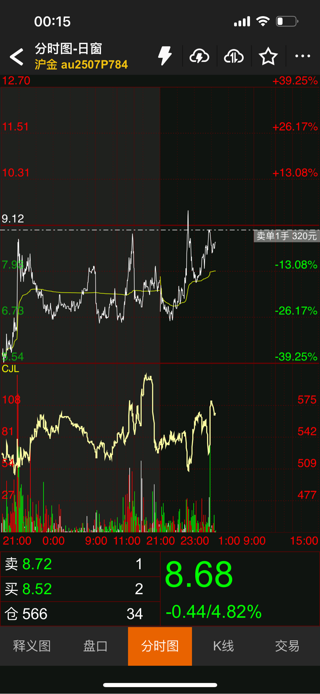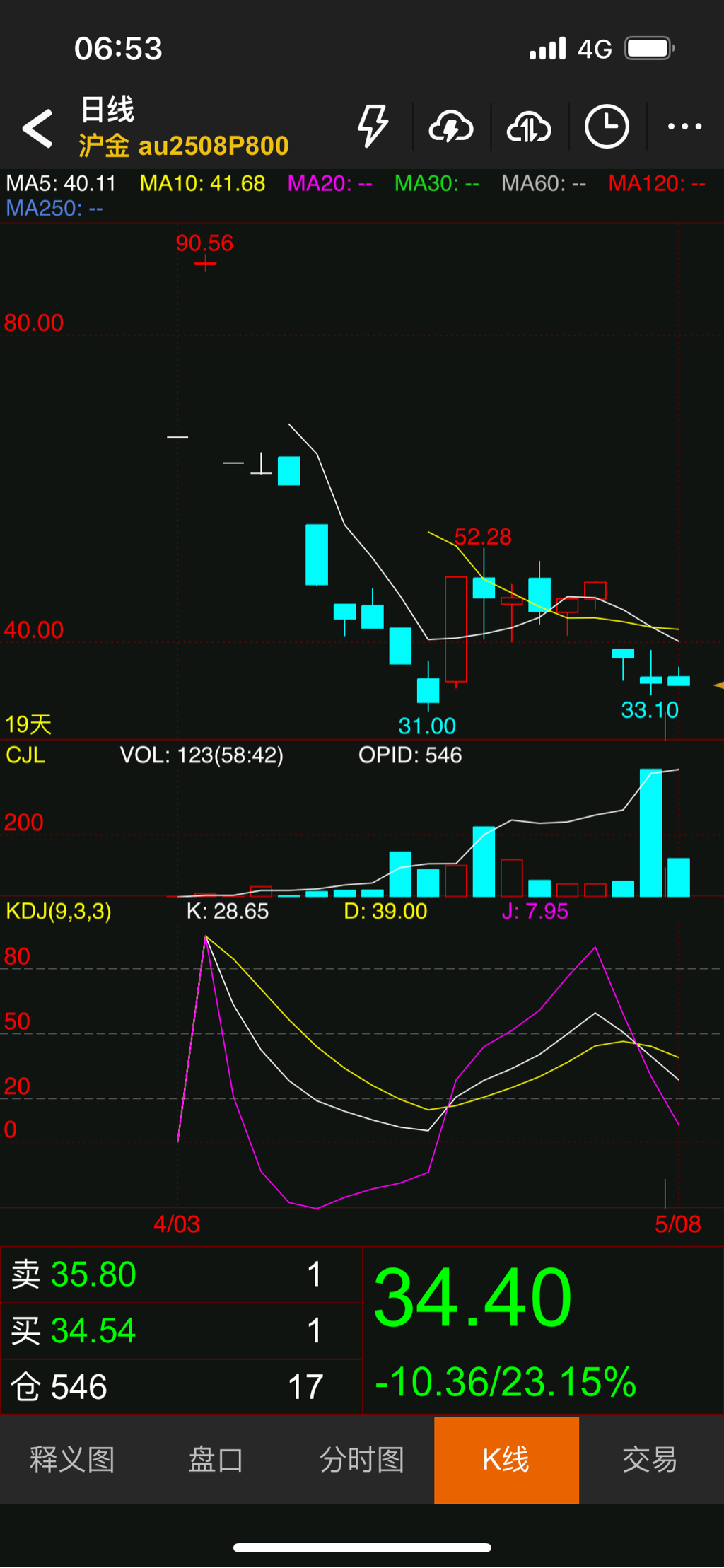 新开一个黄金期权实盘,卖沽接货。本来末日轮开卖方风险有点大,看到明天是沪金2501期权到期,强迫症,从2501开始建仓移仓吧,下跌了就接货。