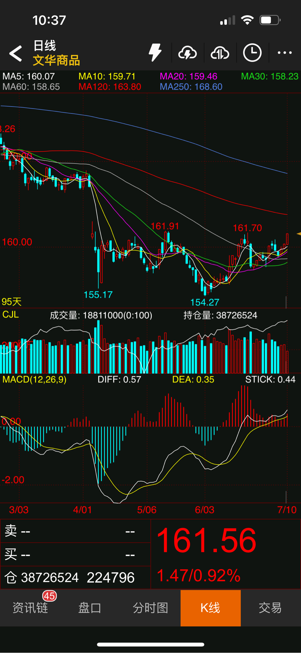 另外的问题就是保证金假期调整,沪金很高,一张要16万,留20万才能做,性价比不高