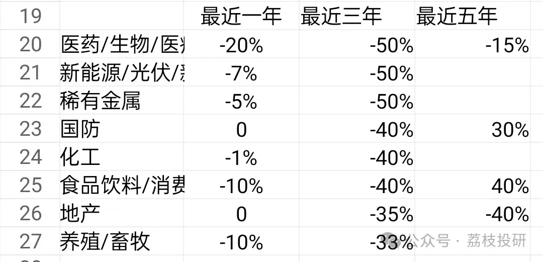 b、扑了几年的医药、养殖、新能源、消费、稀土有小金属等触底反弹?