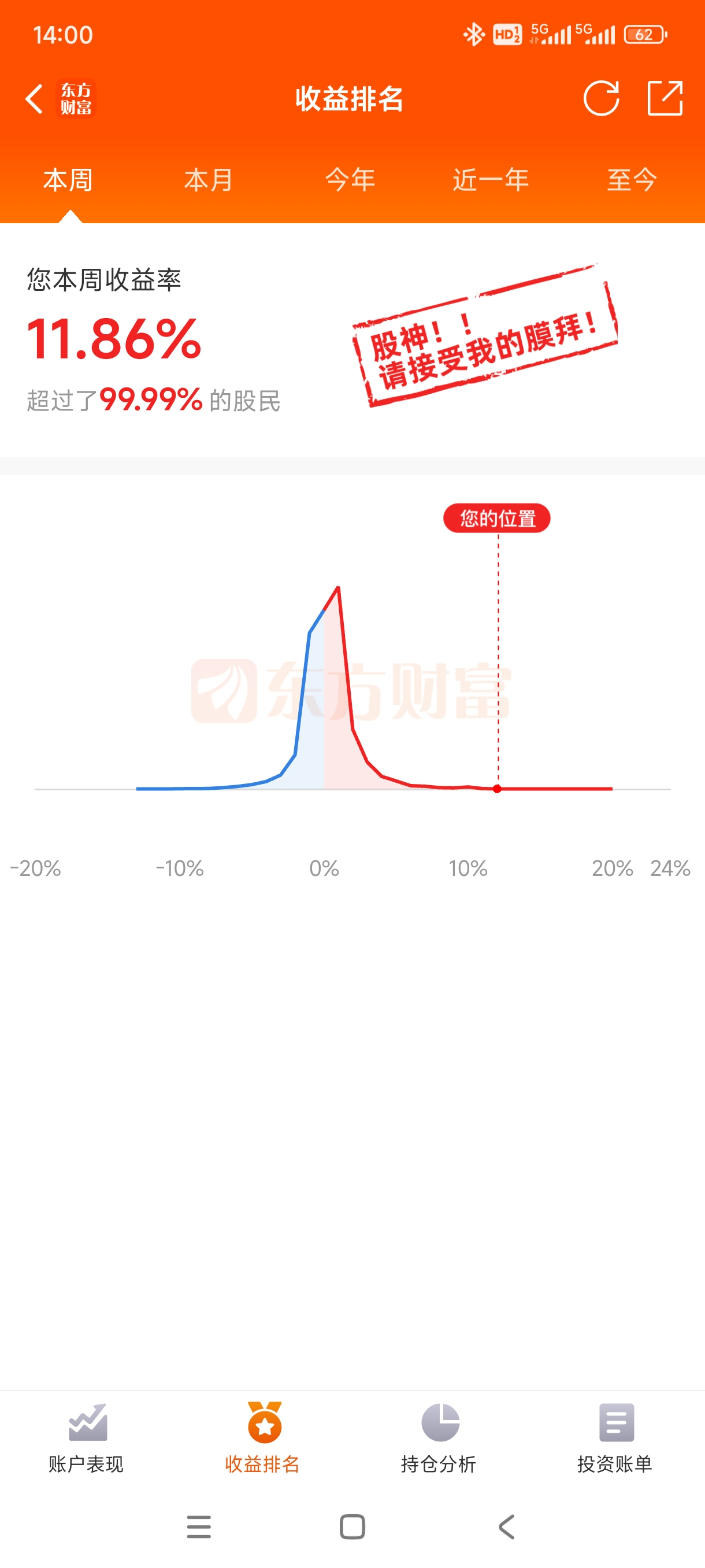 ”放手一搏“账户年内收益率104.4%,跑赢99.72%股友;