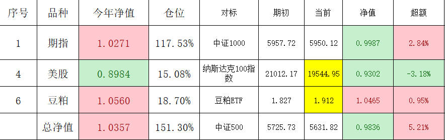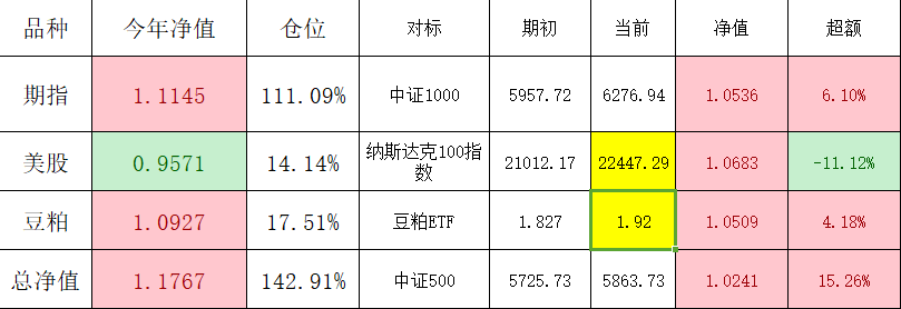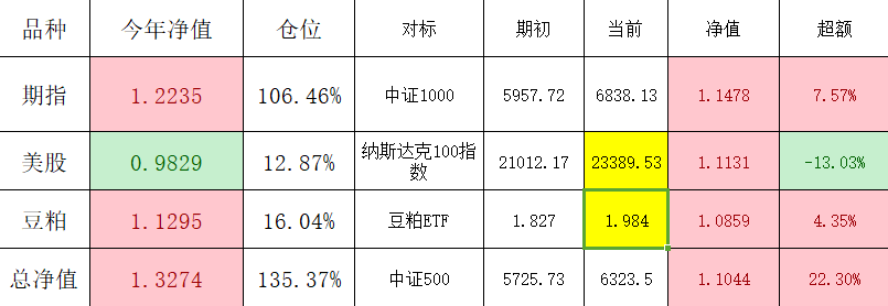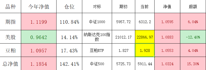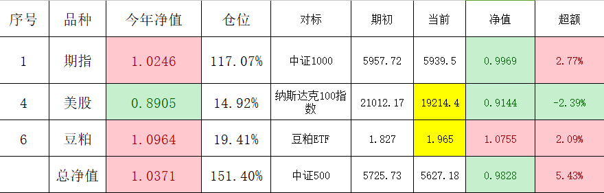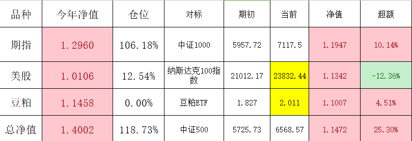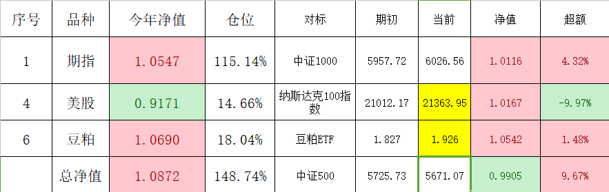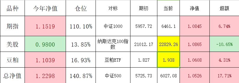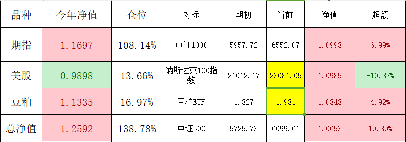 2023年底时,我的持仓包含了A股(消费)、港股、可转债、小市值,这些在2024年底时已经全部清仓。保留了主仓的股指,持有两年半的QDII美股,以及新开的商品豆粕期货,最重要的教训是低相关性。在A股这个一荣俱荣,一损俱损的生态中,要想保持杠杆就只能低相关性,这句话太贵了,请记得点赞收藏。