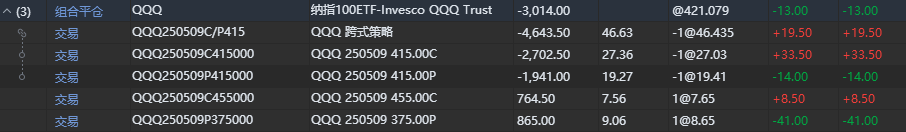 到期日5月9日。。。415双卖,455元buy call , 375元Sell Put。