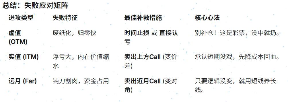 - 他的逻辑:卖购被套了,亏损1万。我平掉它,再卖个更贵的远月期权收回来1.2万。账上现金多了2000,我赢了。