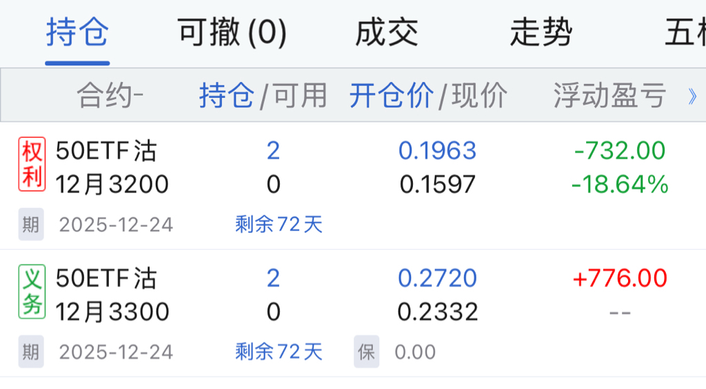 想起来了,好像你还有50多头仓位的吧。那么现在应该处于东边日出西边雨的状况,享受一下龟兔赛跑战术的乐趣也可以的。上证50有的丫,我在9月份1.5元科创50做备兑被行权后,主仓就转到300etf和50etf了,持仓主要就是300和50的牛沽了。