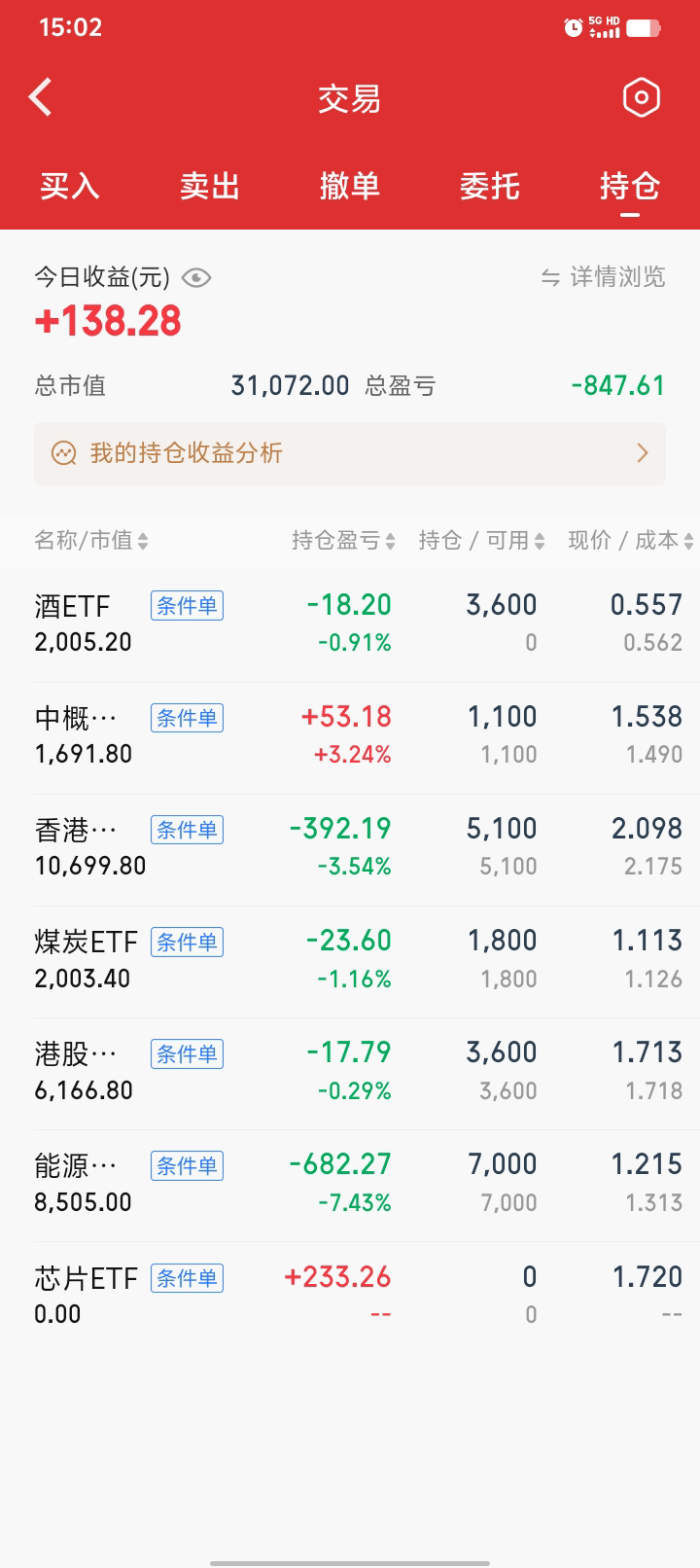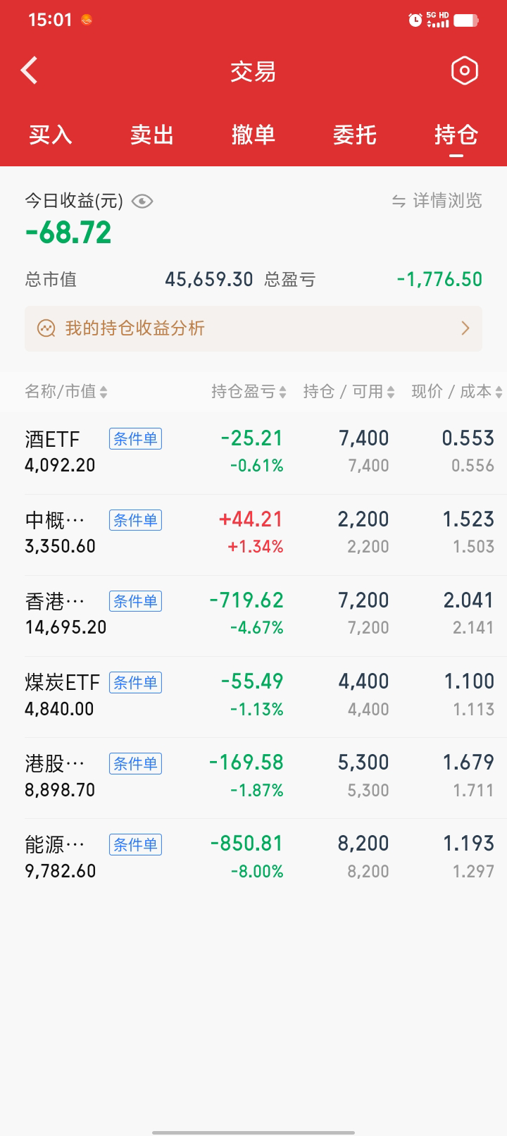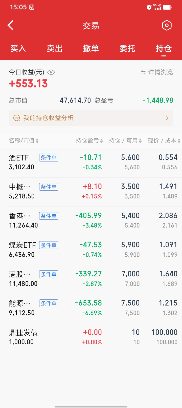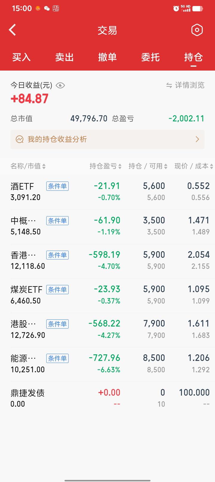 继续网格,清建材e,还剩两个品种了,后面改回网格交易条件单,不用手工了,华泰打电话说我的交易模式让他们亏本了,偷笑。网格间距大点好了。