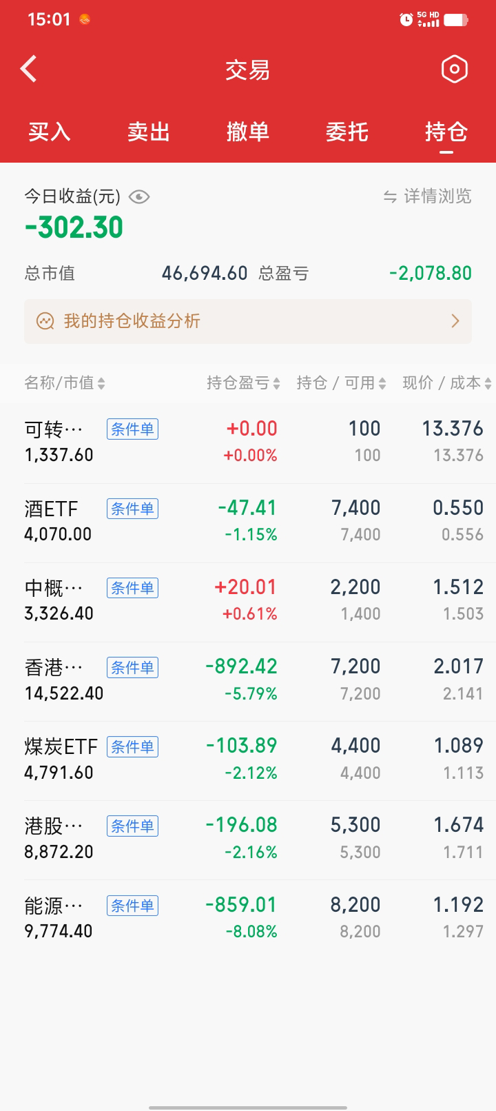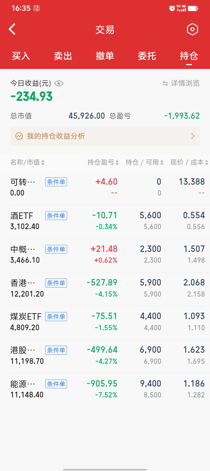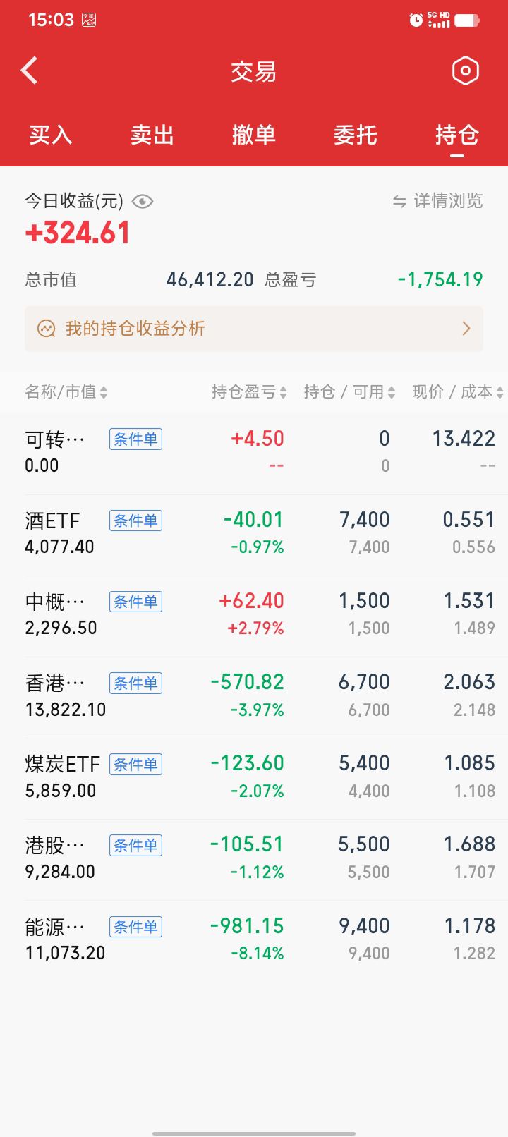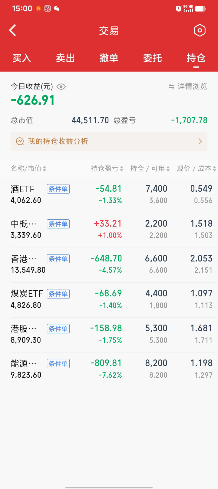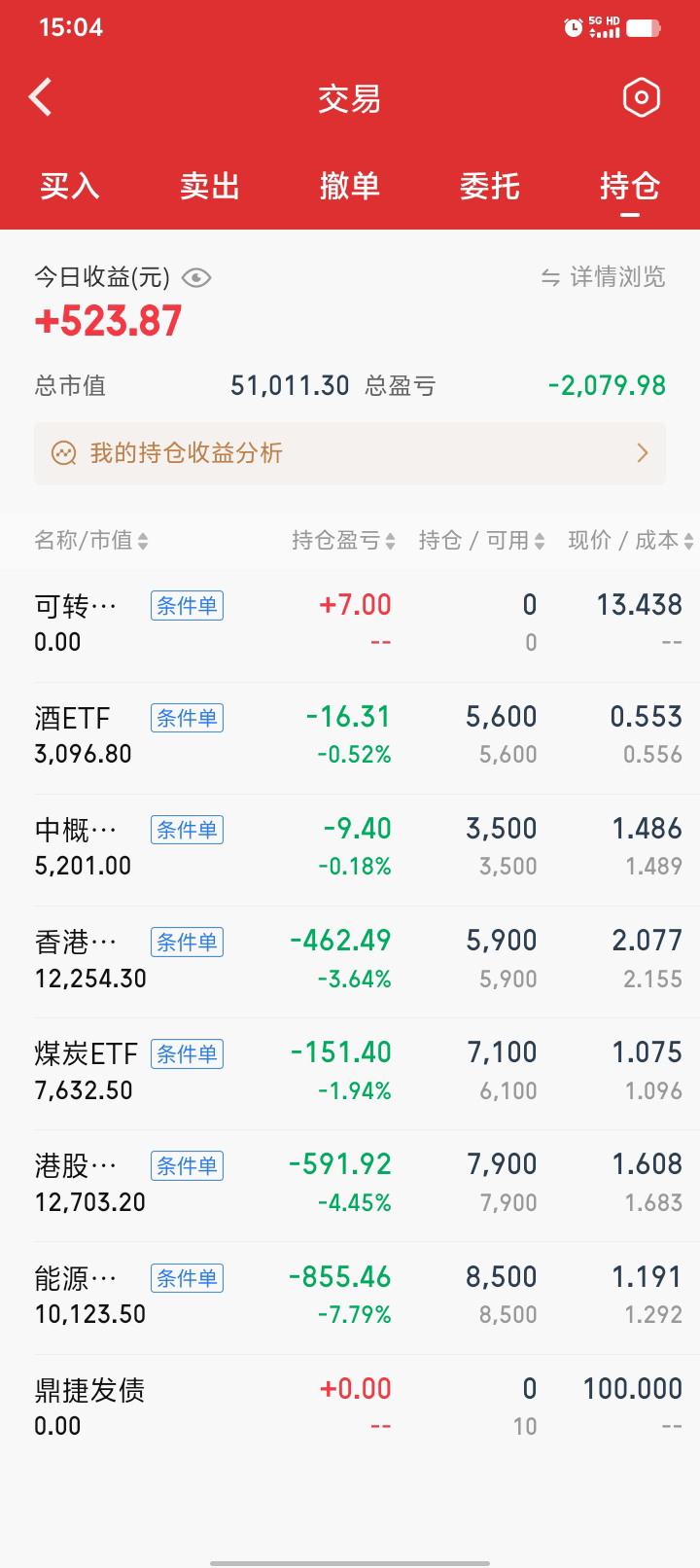 继续网格,清建材e,还剩两个品种了,后面改回网格交易条件单,不用手工了,华泰打电话说我的交易模式让他们亏本了,偷笑。网格间距大点好了。
