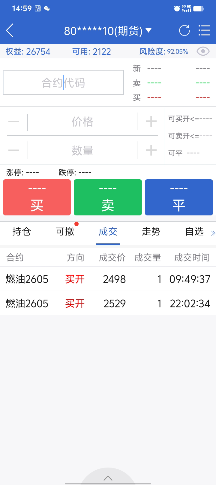按计划2612加fu02,期末正3.39万,回撤约6000块,油真能跌,5手了,后面缓加仓,别像v一样,呵呵。