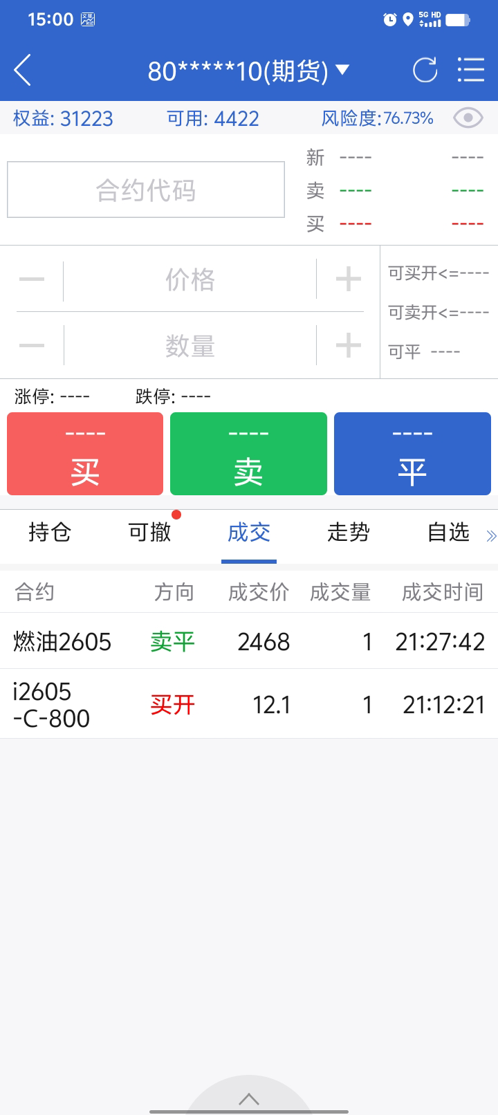 期货账户,期初3.32万。持有铁一手,铁权4手,v两手,sa权3手。为了防止自己折腾除铁油的其他品种,后续铁油阶段性清仓后买入深虚期权(可能是叫这个名字,捂脸),燃油要是有期权就好了。