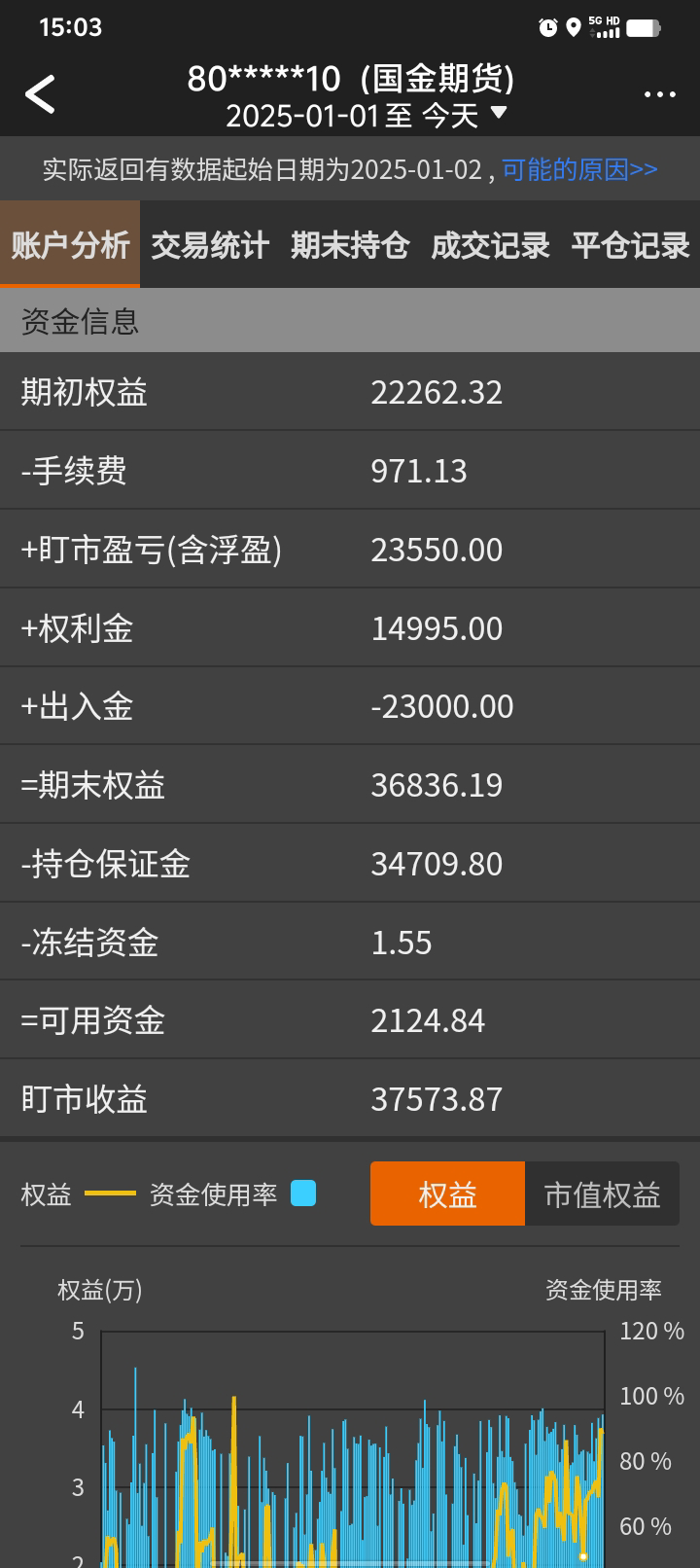 2024交易结束,收益18.7%,有史以来第一次年收益超10%,捂脸。2025年期初73.48万,目标还是6-8%,亏一点也可以接受。大概的框架,还是网格交易,逢跌买入,以15日/周线和涨跌幅定仓位。基金,铁矿和其他期货期权品种各1/3的仓位(期货和期权以对应的合约价值计)。一段时间内某个品种仓位重了就微调其他2类,底线是总资金无杠杆。网格间距,期货4%,期权2%(对应期货品种的2%),基金1.5%。期货期权手续费不超1000(今年1421,套利不做了,应该没啥问题),基金500以内(今年要是不买浙商,也不多)。
