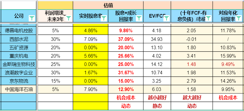 2) 机会成本锚定:以中海油为基准(十年回报率10%),若标的回报率低于12%则放弃。