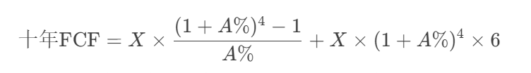 1)十年FCF估算:假设前3年复合增速为A%,后续零增长: