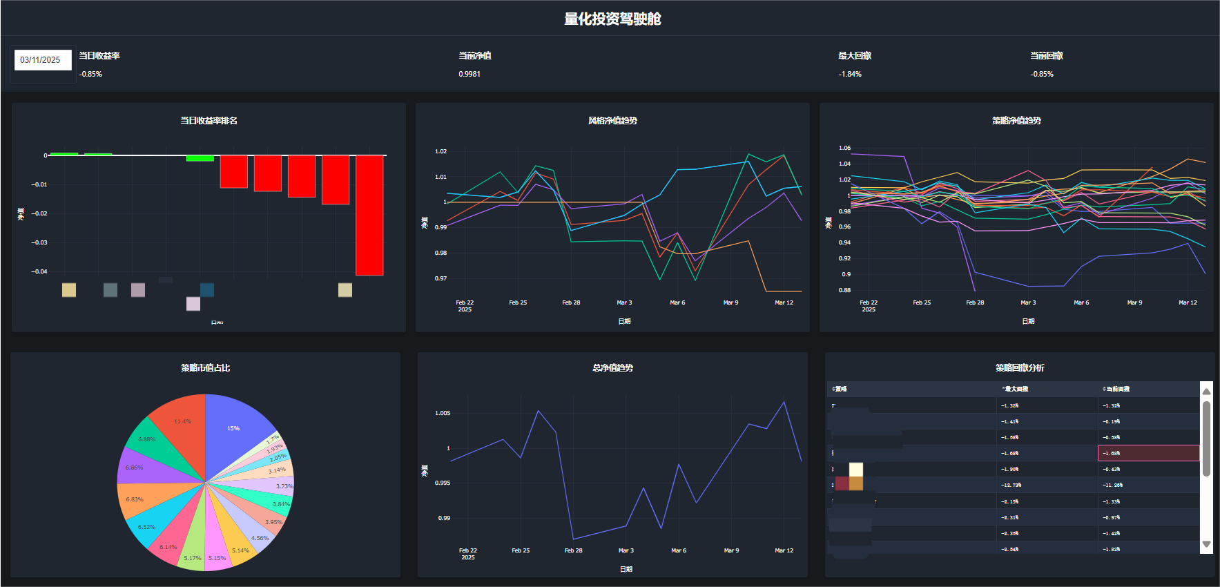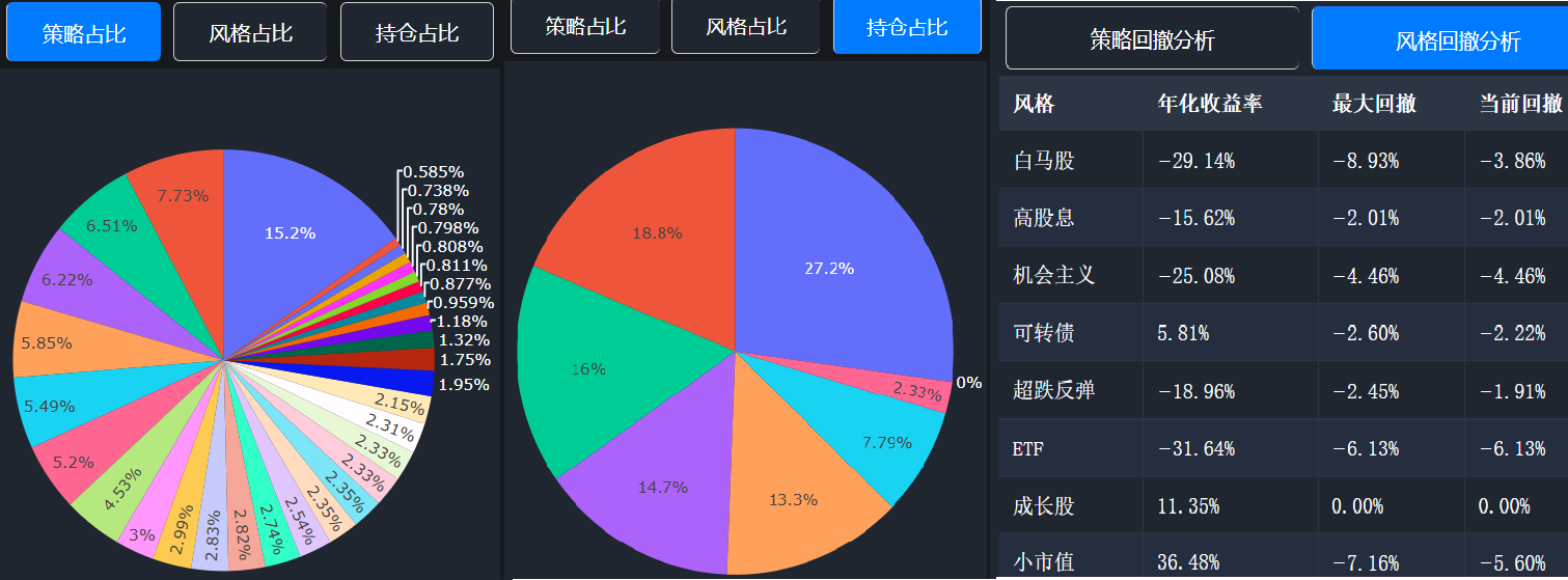 现在持仓是个巨大杂烩,感觉需要做个什么工具,用来看单个策略表现、不同风格策略组的表现、策略仓位比例、策略风格比例。这样跟踪分析,决定应该持有哪些策略、哪些风格及资金增减。