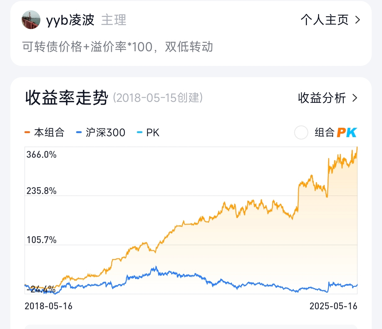 一起向自由出发是那个大神,没查到@yyb凌波250514今年净值:1.0658总仓位100% 江阴银行100%本日+1.38%本周+3.52%本月+6.27%本季+4.30%本年+6.58%组合6年来最大回撤-16.03% 23.12.26当前历史高点回撤0%25.05.14历史最高净值:4.659518.05.15至今累计净值:4.65952018年收益率-7.62%2019年收益率+44....是搜公众号,不是雪球