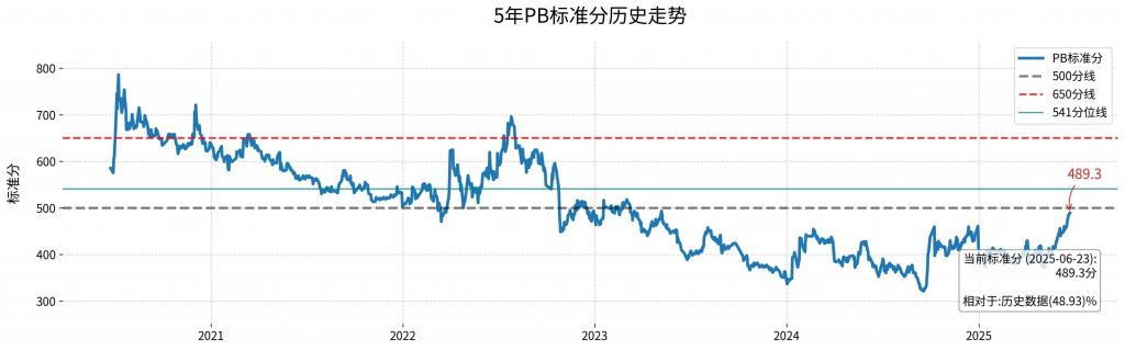 江阴5年PB标准分,终于历史上第一次过平均水位,2016年9月上市,21年满5年后,统计的PB水位就没上过中位数。
