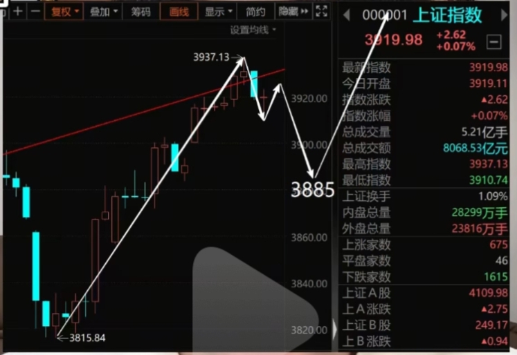 3815是本轮的最低点(大概率),今天收盘3968,开启五浪上升阶段,空间看到4215(3815--4215)