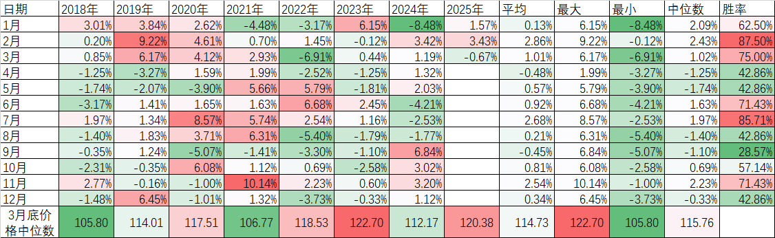 但1年里每个月的涨跌也不是平均的,我们先来看看每年的1月份: