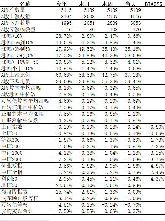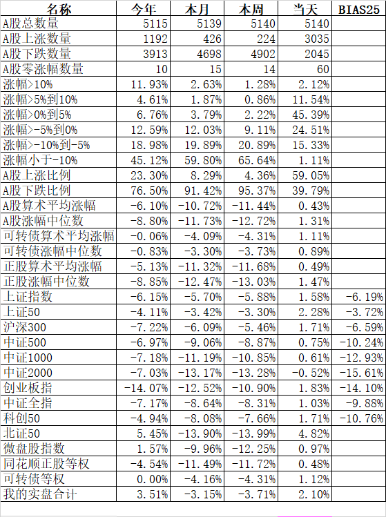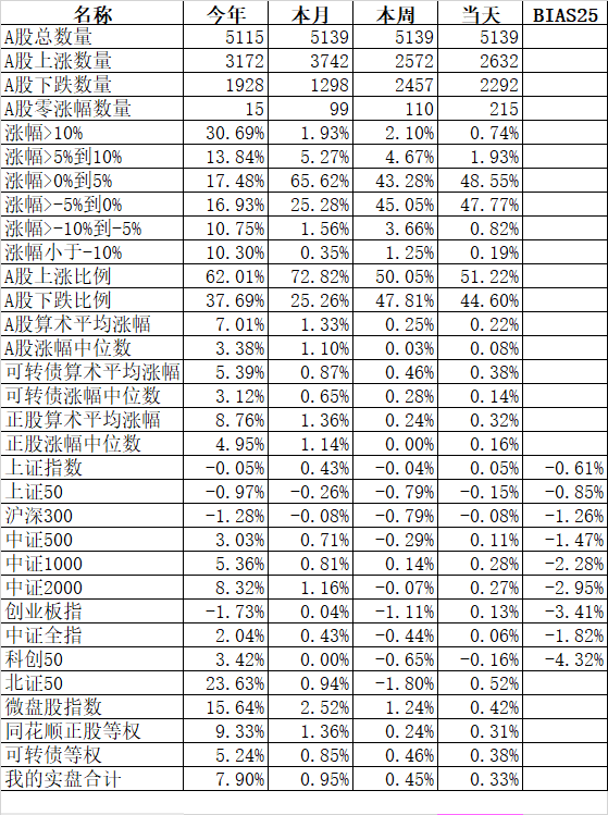 2689只个股上涨、2276只个股下跌,涨幅中位数0.14%。今天指数涨得不错,但个股反而表现平平。